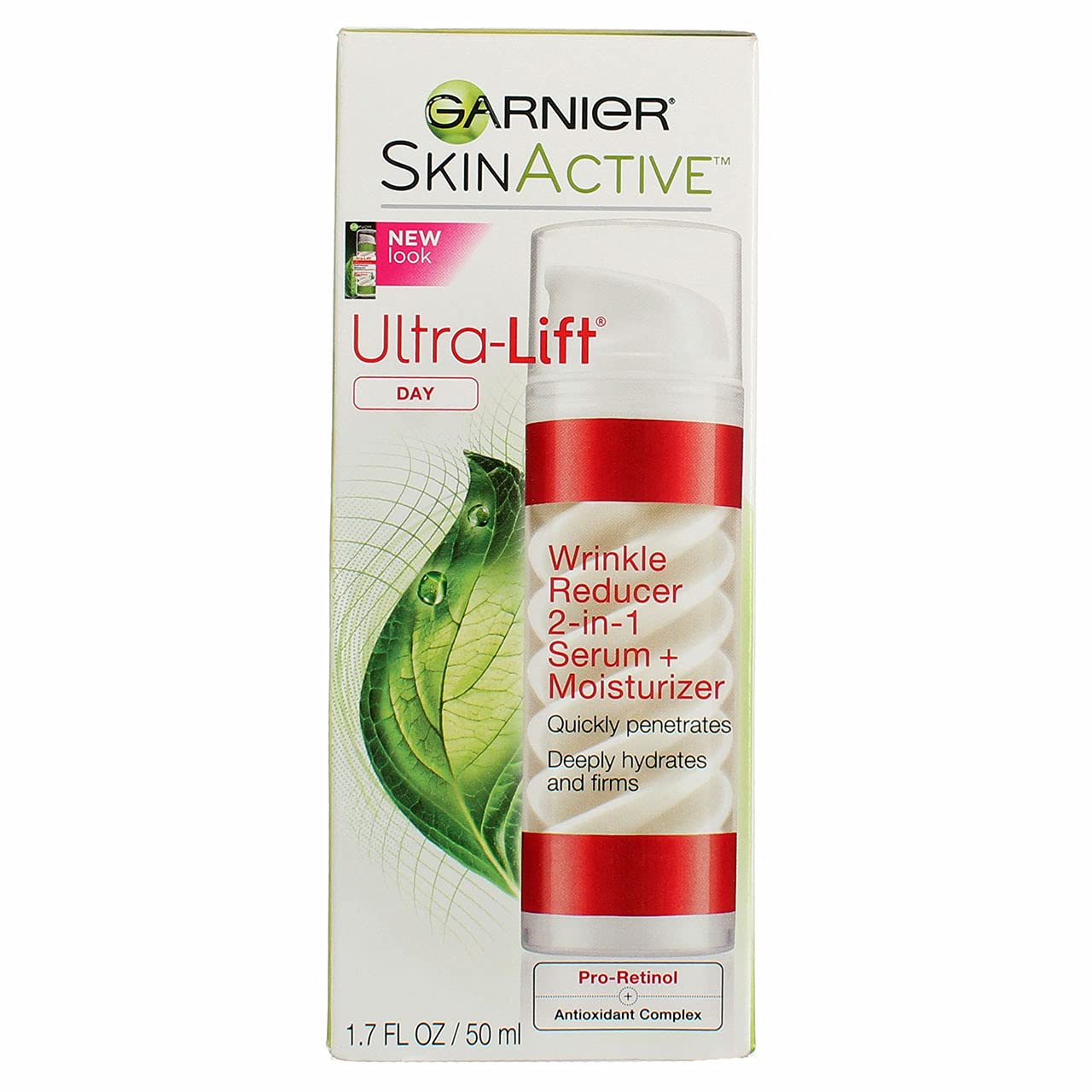 Garnier Ultra-Lift introduces a 2-in-1 innovation to deliver powerful anti-wrinkle results in just one easy step. With 2X Pro Retinol from Nature , Ultra-Lift 2-in-1 Wrinkle Reducer combines a precise dose of both a concentrated serum and a daily moisturizer to boost anti-wrinkle and firming action. This swirl suspension technology means no more compromises - the result of a serum and moisturizer in just one step.