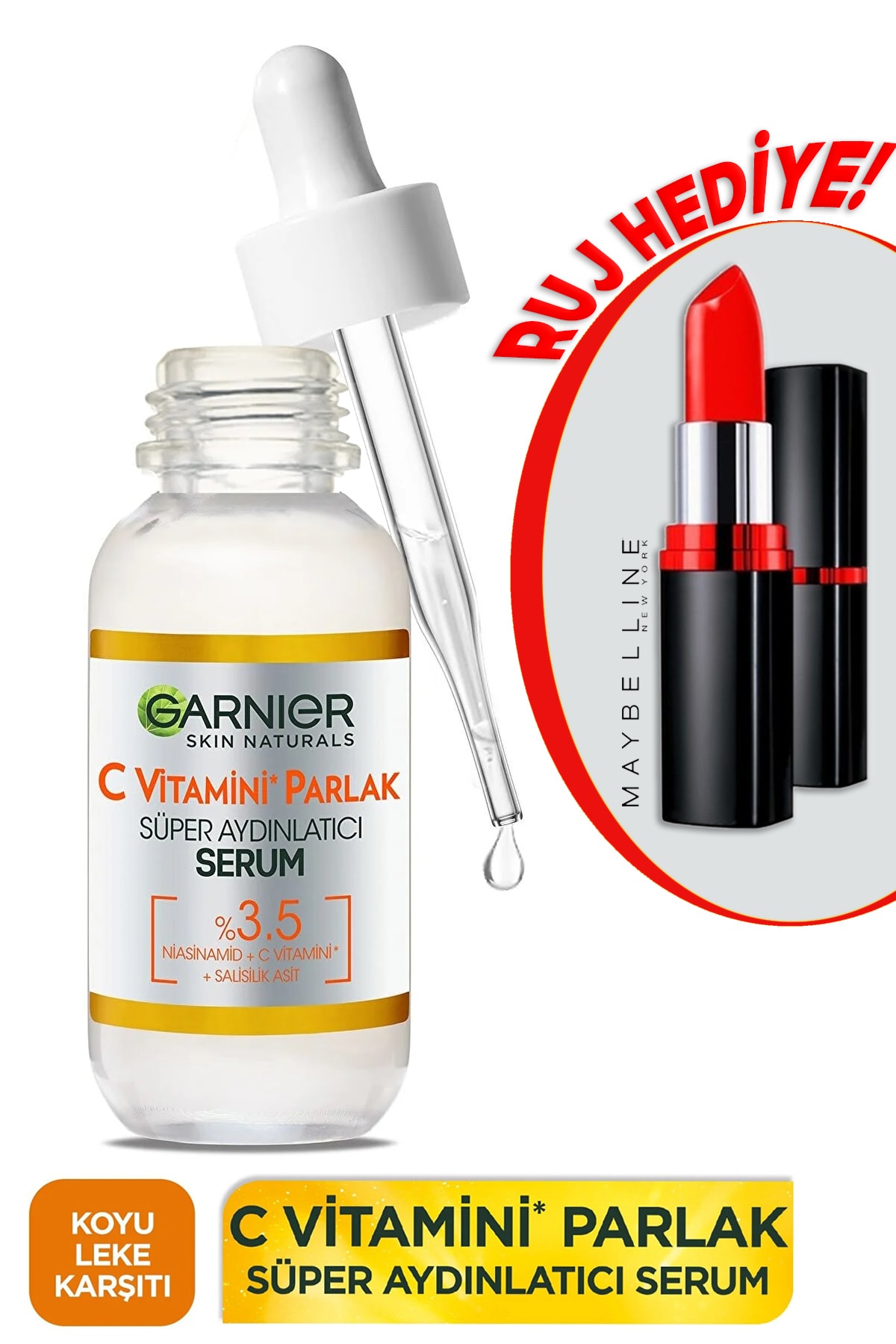 Garnier Vitamin C Brilliant Super Illuminating Serum 30ml + Maybelline New York Color Show 202 Lipstick
