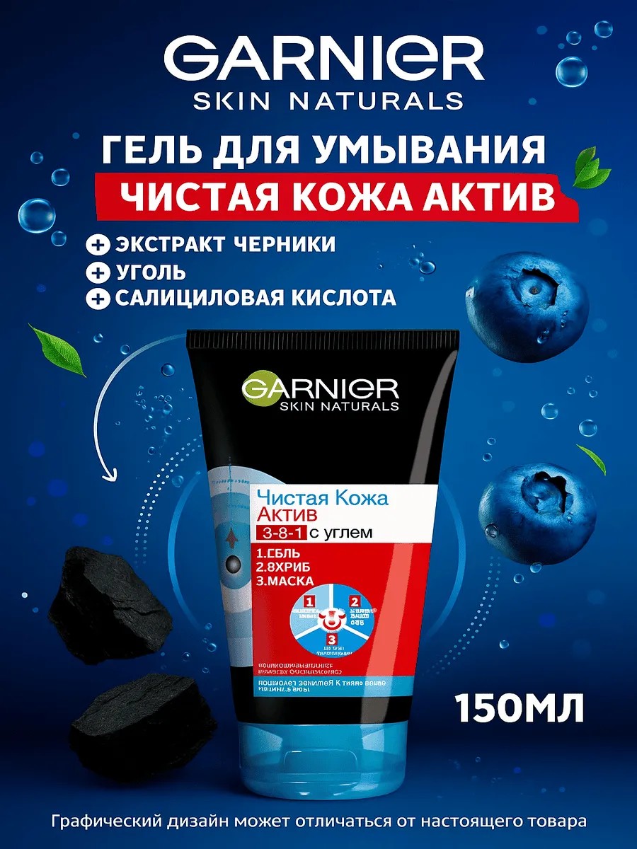Full product nameGARNIER Cleansing Gel Pure Skin Active 3 in 1 with blueberry extract, charcoal and salicylic acid, 150 ml