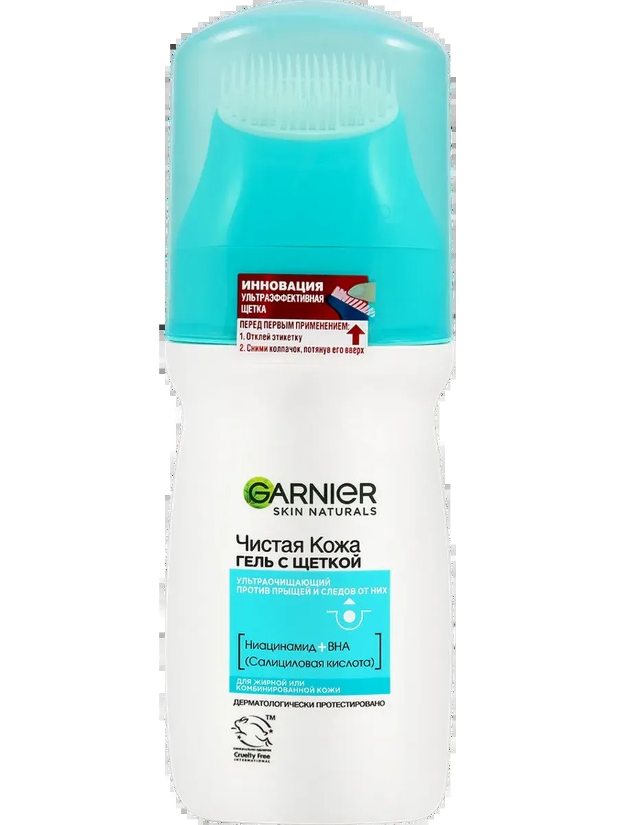 Гель для умывания GARNIER Чистая кожа Актив с салициловой кислотой против прыщей с щеткой «Эксфопро» – инновационное средство. 170 мягких и эластичных щетинок и высокоэффективная формула геля, обогащенная 2%-ой салициловой кислотой, которая обладает антибактериальным действием и регенерирующим фитокомплексом, обеспечивают усиленную эффективность в борьбе с прыщами. Глубоко и мягко очищает кожу, устраняет прыщи и жирный блеск.