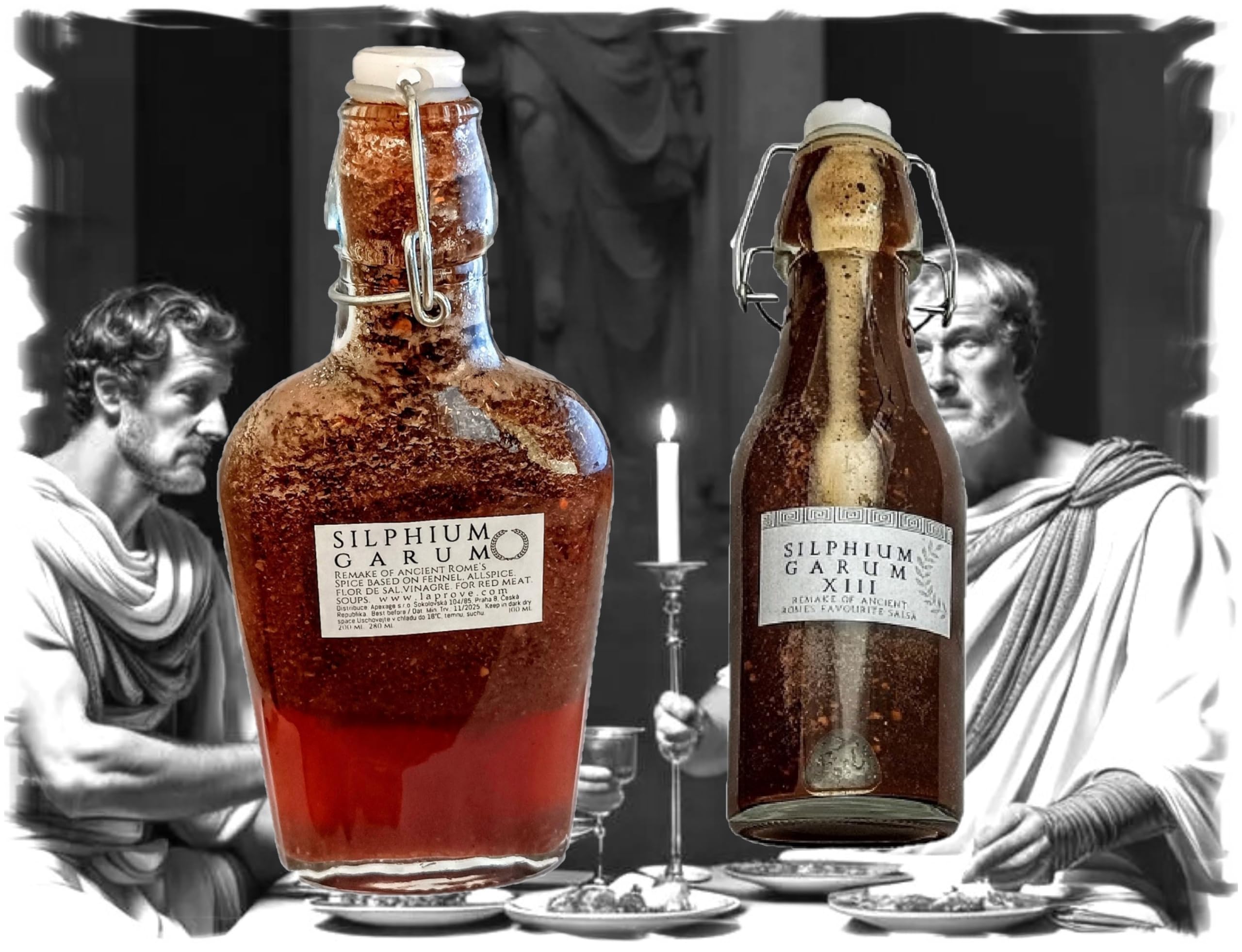 Garum with Silphium XXIII and Silphium Garum. A remake of ancient Roman sauce in combination with garlic and Mexican chilies