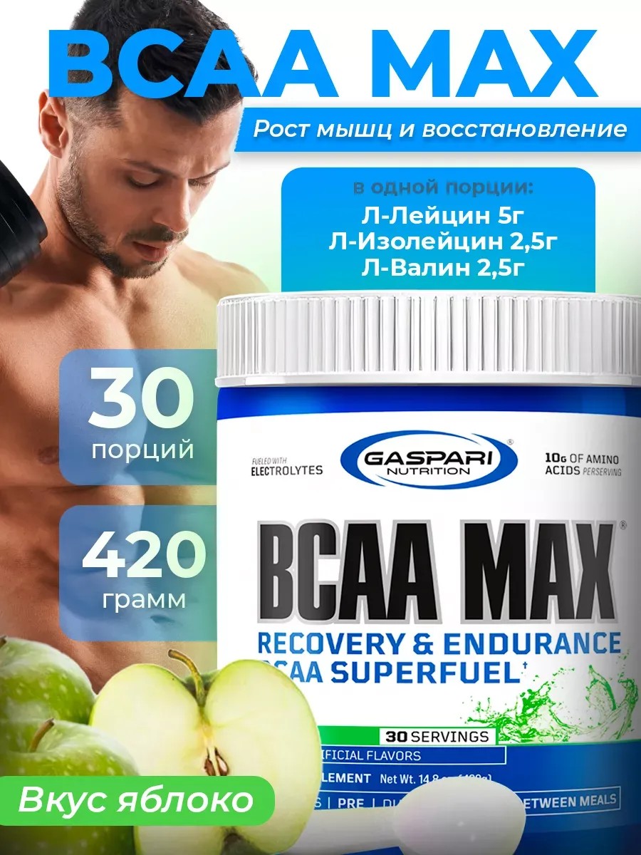 Комплекс BCAA MAX от Gaspari Nutrition представляет сочетание трёх значимых для человеческого организма аминокислот: лейцина, изолейцина и валина. Данная добавка - 100% фармацевтического качества аминокислоты с разветвленными боковыми цепочками, которые обеспечивают организм важнейшими питательными веществами. Все бсаа относятся к незаменимым аминокислотам, то есть не вырабатываются организмом, а только поступают в него с пищей. BCАA спортпит – это комплексный порошок, содержащий в себе всю необходимую amino аминокислоту бцаа. Пользуясь питательным коктейлем для роста мышц и похудения, можно улучшить результаты тренировок. Вы сможете эффективно управлять своим весом, контролировать аппетит и сжигать жир. Регулярное применение нашего порошка помогает ускорить обмен веществ и метаболический процесс, способствует снижению жировых отложений и обеспечивает сохранение мышечной массы. Пред тренировочный коктейль аминокислот всаа для набора веса мышечной массы спортивного питания Gaspari Nutrition идеально подойдёт для сушки перед соревнованиями. Спорт питание Бца – это натуральное безопасное средство. Продукт bca является отличным выбором для всех, кто придерживается зож. Для бодибилдеров и атлетов бца являются неотъемлемой частью их рациона, так как именно данные аминокислоты несут основную ответственность за увеличение белкового синтеза, приводящего к более эффективному восстановлению, повышению выносливости и производительности, а также способствующие более быстрому и качественному мышечному росту. Культуристам и другим спортсменам высокого уровня известно, что бсаа, являются ответственными за увеличение синтеза белка, который может привести к более быстрому восстановлению, увеличить мышечную массу, производительность и выносливость. Помогает уменьшить болезненность мышц после физической нагрузки. Быстро увеличивает синтез энергии. Лучшее время для приема - когда вам необходимо восстановление. Желательно перед или после тренировки – тогда прием принесет наибольшую пользу.