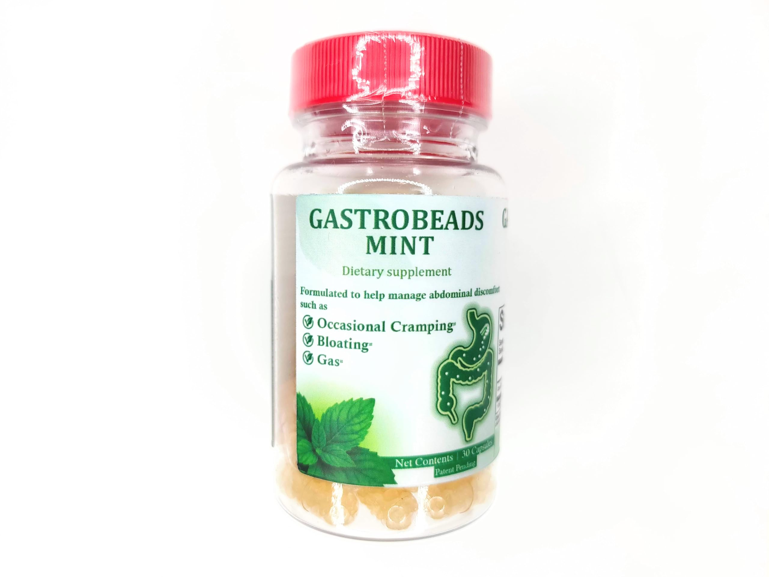 GASTROBEADS Mint Digestive Support Supplement 30 Vegecaps Mint Oil for Bloating and Gas Relief