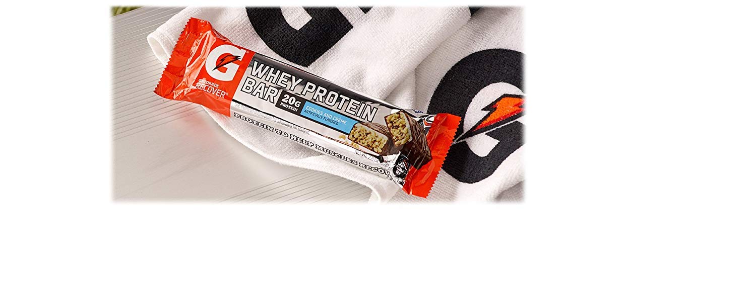 Individually wrapped to enjoy at the gym, off the field, or on the go. 350 calories, 20g protein, 42g Carbs. Scientifically developed for athletes, each bar contains protein and carbs to rebuild and refuel. The protein bar used by the pros in the NFL, NHL, NBA and MLB is now available to you, includes 12 cookies and cream bars. 50 grams of carbs per recovery bar to replenish and get ready for tomorrow's workout. Post workout bars made with 20 grams of high quality whey and milk protein to help rebuild your muscles for athletic recovery. Don't count the days. Make the days count. Grab your home workout equipment then help your muscles rebuild with 20g of protein from Gatorade Whey Protein Bars.