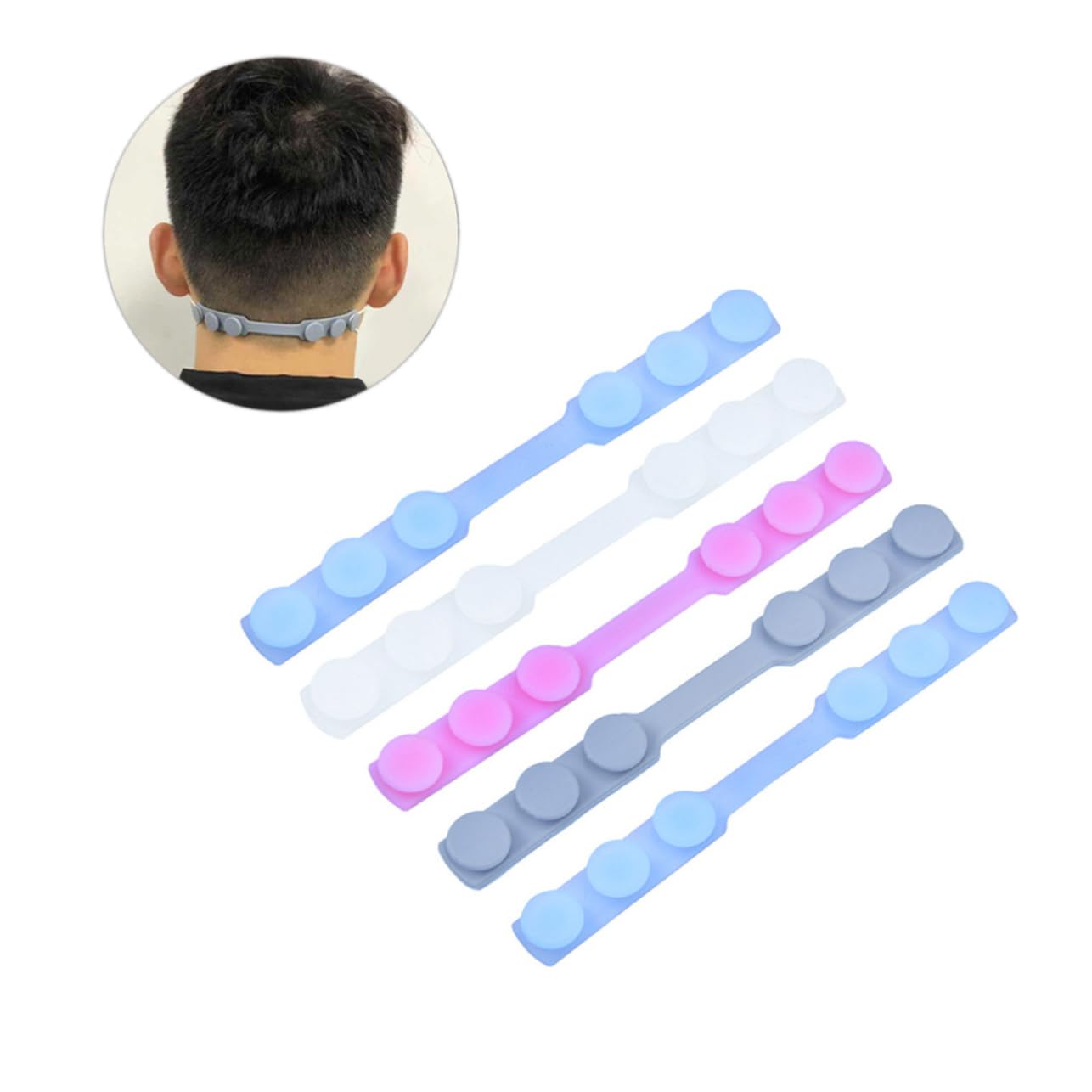 Paket beinhaltet 8 x Maskenhaken Eigenschaften - Farbe: Blau+Weiß+Rosa+Grau. - - Material: verstellbarer Maskenhaken aus Silikon. – Größe: ca. 15,8 x 1,5 x 0,7 cm. – der Maskenhaken ist mit den meisten Ohrmuscheln auf dem Markt kompatibel und reduziert Ohrenkratzer. Maskenverlängerungsschnalle. – Entwickelt, um Ihnen beim Festziehen der Maske zu helfen und einen besseren Masken-Gehörschutz zu bieten. – rutschfestes Design hilft, die Maske gut zu halten, bequemer zu tragen, Maskenverlängerungshaken. – sowohl für kleine Gesichts- als auch für Maskenhaken geeignet. – aus hochwertigem Material für langlebigen und praktischen Gebrauch. Warenbeschreibung Silikon-Maskenschnalle aus hochwertigem Material für langlebigen und praktischen Gebrauch. Maskenhaken Bei diesem Artikel handelt es sich um einen Maskenverlängerungshaken, der Ihnen dabei helfen soll, die Maske festzuziehen und besseren Schutz zu bieten. Bundverlängerungen können auch Ihre schützen Das rutschfeste Design des Ohrbügelhakens hält die Maske gut und ist angenehmer zu tragen. Die Maskenverlängerungsschnalle ist für die meisten Masken geeignet