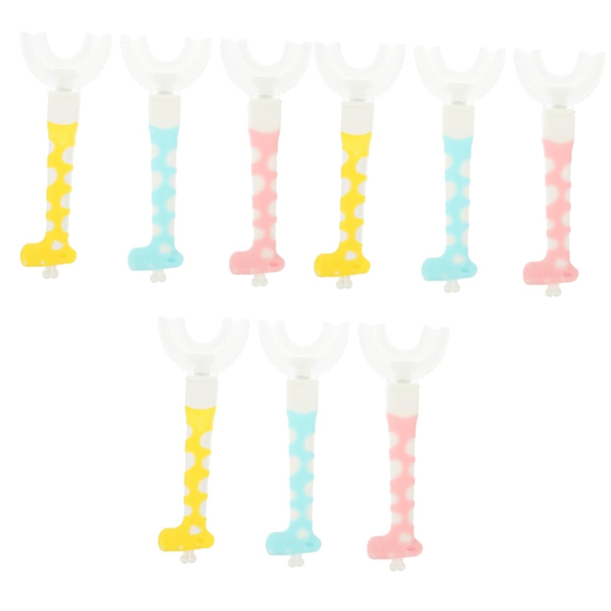 Package contains 9 x U-shaped toothbrushes Characteristics -Material: silicone, ABS manual children's U-toothbrushes -N Note: Suitable for children between the ages of 4 and 8 years of children and toothbrush. - Keeping and grabbing comfortably for children and using them comfortably.The hands will not feel tired after a long use of the cartoon children's toothbrush. -Made from high-quality silicone and ABS materials, it is durable and practical for long-term use of children's toothbrushes. - easy and portable.This children's toothbrush is ideal for cleaning children's teeth on trips or at home. - With the comfortable brush head, do not injure your mouth and can thoroughly clean your teeth.Children's toothbrush in U-shape. - can help children clean their teeth faster and more thoroughly and to maintain oral health.U-shaped toothbrush. Goods information We use safe and healthy materials to reduce the risk of mouth injuries.Baby toothbrush This baby toothbrush can help children develop the habit of brushing the teeth.360-degree children as parents, what you should do, it helps your baby to develop mundshygiene dwellings