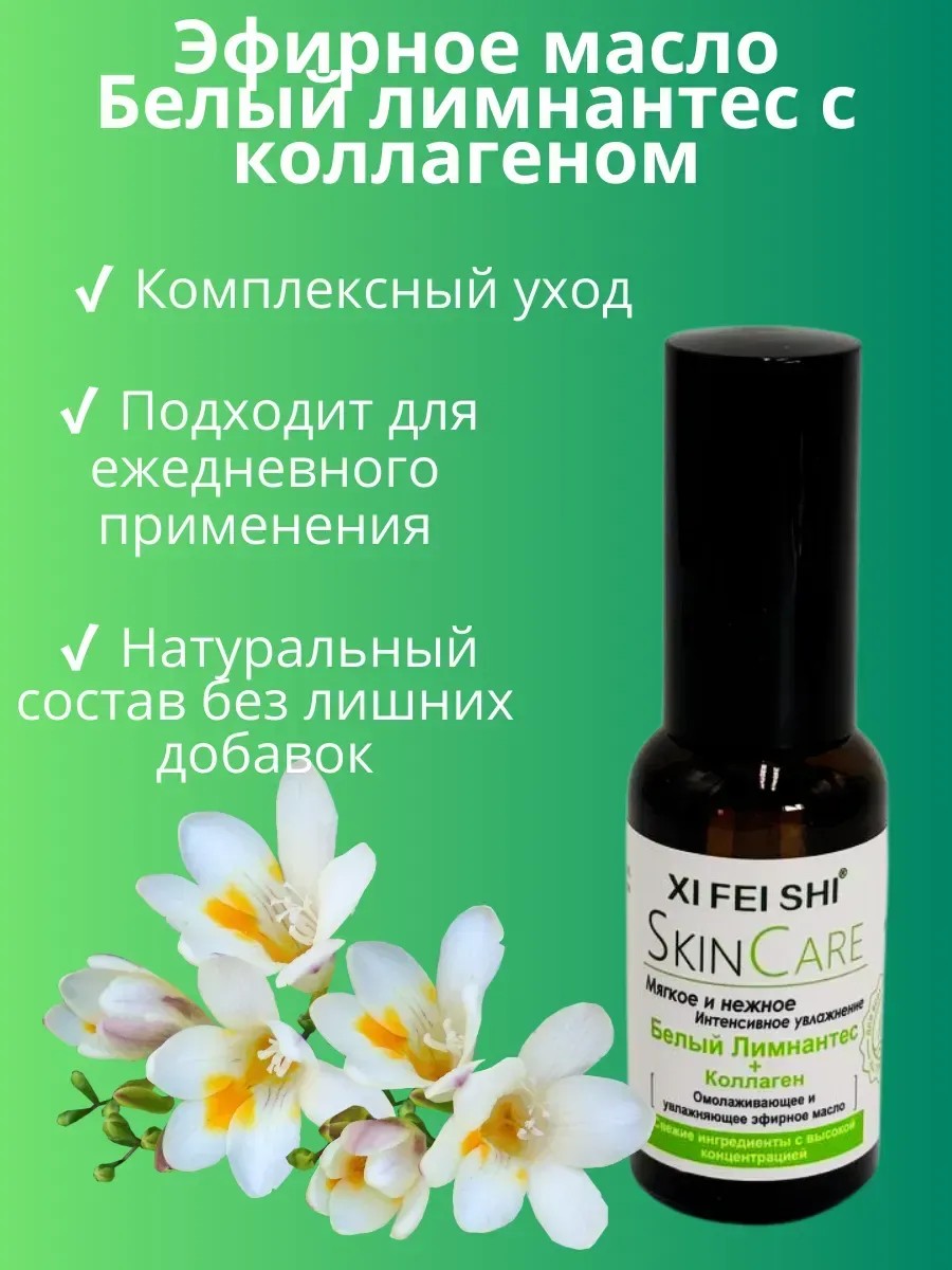 Эфирное масло Белый лимнантес с коллагеном — это многофункциональный уход для лица и тела. Оно сочетает в себе глубокое питание, увлажнение и восстановление кожи, помогает в борьбе с сухостью, морщинами и потерей упругости. Благодаря натуральному составу средство подходит для ежедневного применения и для всех типов кожи, включая чувствительную.
