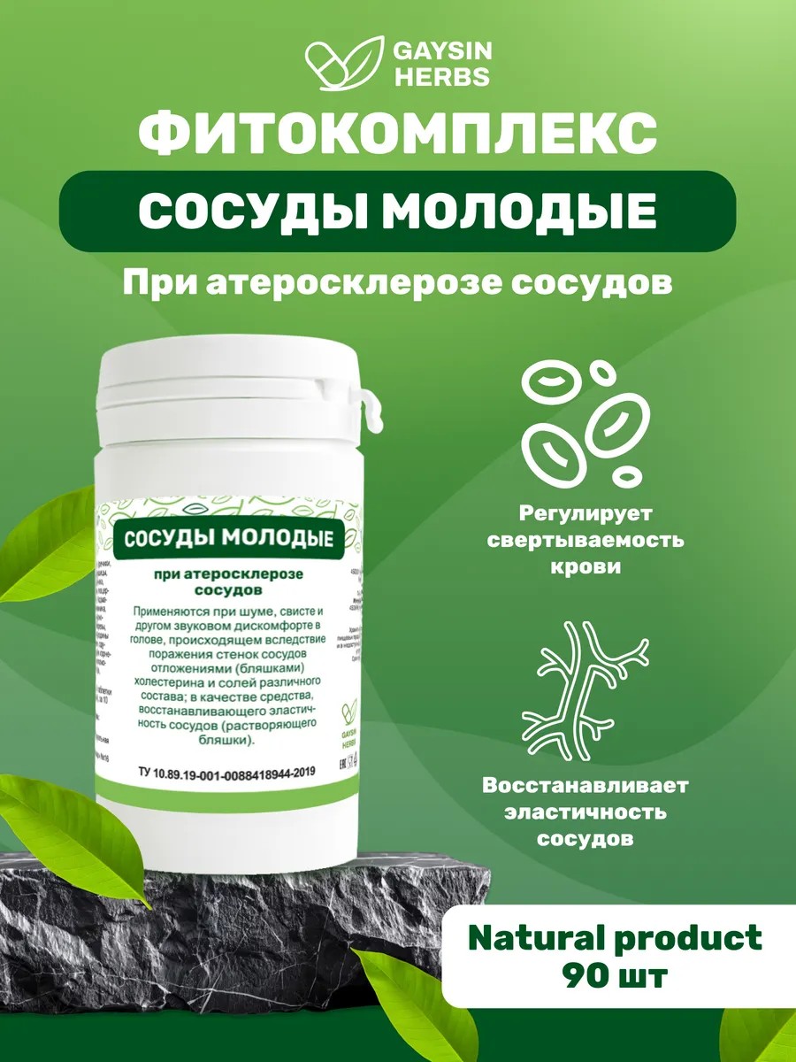 GAYSIN HERBS herbal tablet collection "Young Vessels" combines the essential properties for effective support of vascular health.