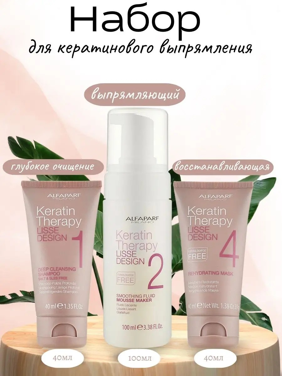 | Комплектация | Набор Alfaparf Keratin Therapy включает 3 продукта |