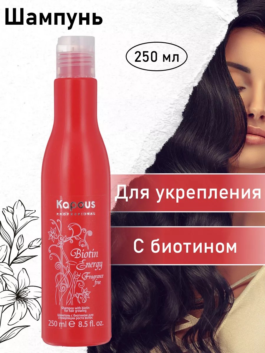 Шампунь Kapous Professional с биотином для укрепления и стимуляции роста волос 250 мл обеспечивает комплексный уход за вашими волосами, начиная с корней и заканчивая кончиками. Специально разработанная формула с биотином активно действует на корни и кожу головы, уменьшая выпадение волос и способствуя их росту. Биотин, важный компонент для здоровья волос, стимулирует производство кератина, предотвращая не только выпадение волос, но и появление седины. Он также активизирует процессы регенерации кожи головы, способствуя ее здоровью и улучшая общее состояние волос. Пантенол, входящий в состав шампуня, обеспечивает волосам дополнительное увлажнение и уплотнение, делая их более крепкими и эластичными. Натуральные экстракты, содержащиеся в шампуне, придают волосам силу и энергию, восстанавливая их структуру. Применение шампуня просто: нанесите его на влажные волосы, вспеньте и оставьте на 2-4 минуты, затем тщательно смойте. При необходимости повторите процедуру. Для достижения максимального результата рекомендуется использовать шампунь в комбинации с лосьоном и маской из серии "Biotin Energy". Шампунь подходит для частого использования и доступен в серии «Fragrance free», не содержащей парфюмированных добавок, что делает его идеальным выбором для тех, кто предпочитает нейтральные ароматы. Поверьте, вашим волосам понравится этот уход!