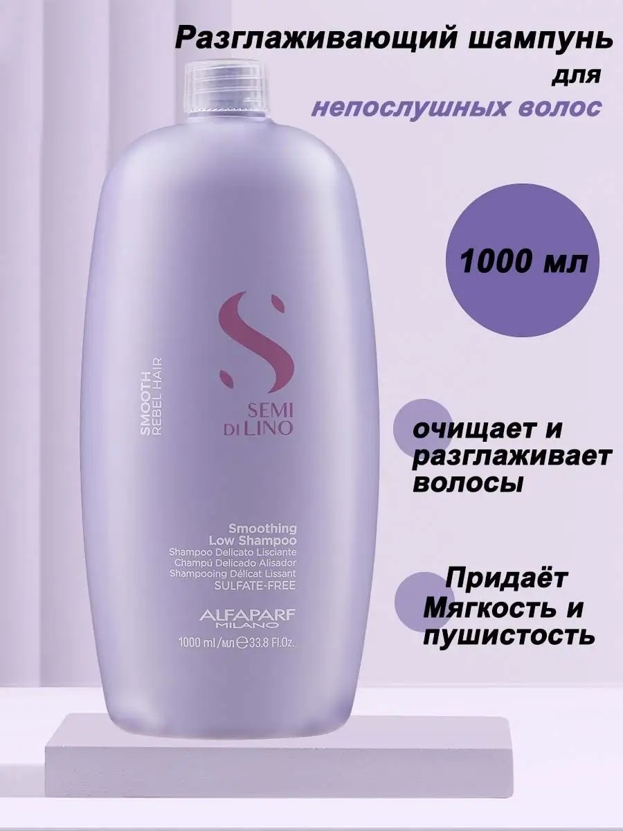 Хотите, чтобы ваши непослушные волосы стали послушными и шелковистыми? Ищете шампунь, который сможет разгладить и укротить вашу причёску? Представляем вам превосходный Разглаживающий шампунь для непослушных волос Smooth Rebel Hair от ALFAPARF MILANO Semi di Lino, великолепное средство объемом 1000 мл. Этот шампунь разработан специально для борьбы с непослушными и неподатливыми волосами, чтобы придать им невероятную гладкость и упругость. Он с лёгкостью разглаживает каждую прядь и обеспечивает длительный контроль над укладкой. Продукт не содержит вредных сульфатов, парафиновых и минеральных масел, что делает его безопасным для использования на ваших волосах. Вы можете наслаждаться результатами, зная, что шампунь бережно заботится о вашей прическе, не перегружая её лишними веществами.