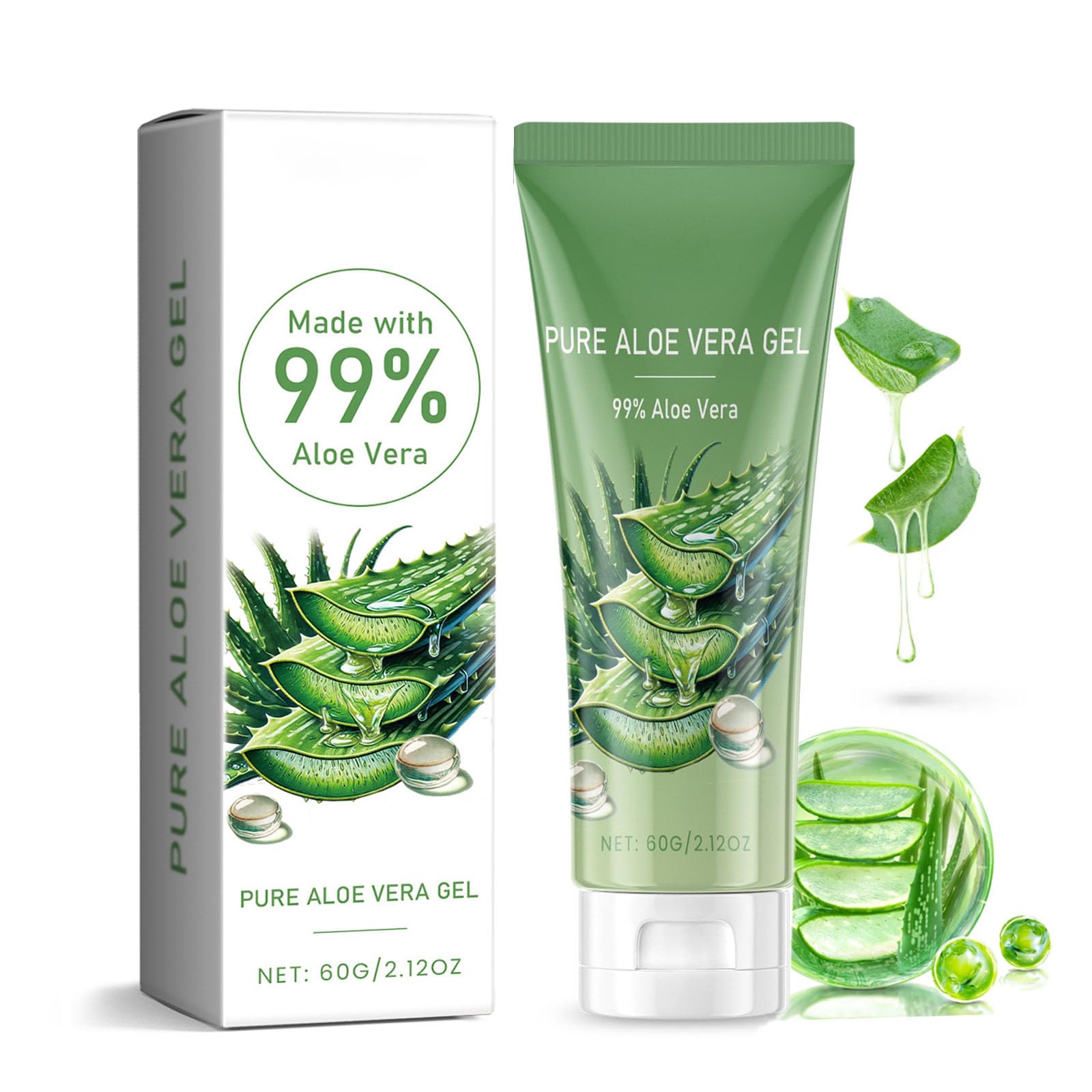 How to Use During the day you can use it as a makeup primer to make your foundation more wearable, and at night you can apply our Aloe Vera Gel thickly for skin soothing purposes. After washing your face, take an appropriate amount of Aloe Vera Gel and apply it all over your face, massage until absorbed. Natural Safe Ingredients Our aloe vera gel is formulated with 100 natural ingredients. It is gentle and non-irritating, never straining your skin. Suitable for all skin types, including sensitive skin, it can be used with complete peace of mind. Boost your facial radiance - Enhance your natural beauty with our nourishing gel, providing balance of hydration and radiance to your skin. Our nourishing and refreshing aloe gel helps maintain skin's natural balance and pH levels. It helps to reduce dryness and flaking, leaving skin feeling soft and supple. Soothing after Sun - This Aloe Vera Gel is especially good for soothing the skin after being exposed to sunlight. It has cooling and calming properties to help reduce redness and provide sunburn relief. It effectively repairs your skin problems. Pure Aloe Vera Gel - Our Aloe Vera Gel is made with 100 pure organic aloe and combined with hydrating ingredients to make a fast-acting moisturizer to restore skin's natural balance and hydration. It provides intense hydration for a plump and supple complexion. It's lightweight and fast-absorbing and it's suitable for all skin types.