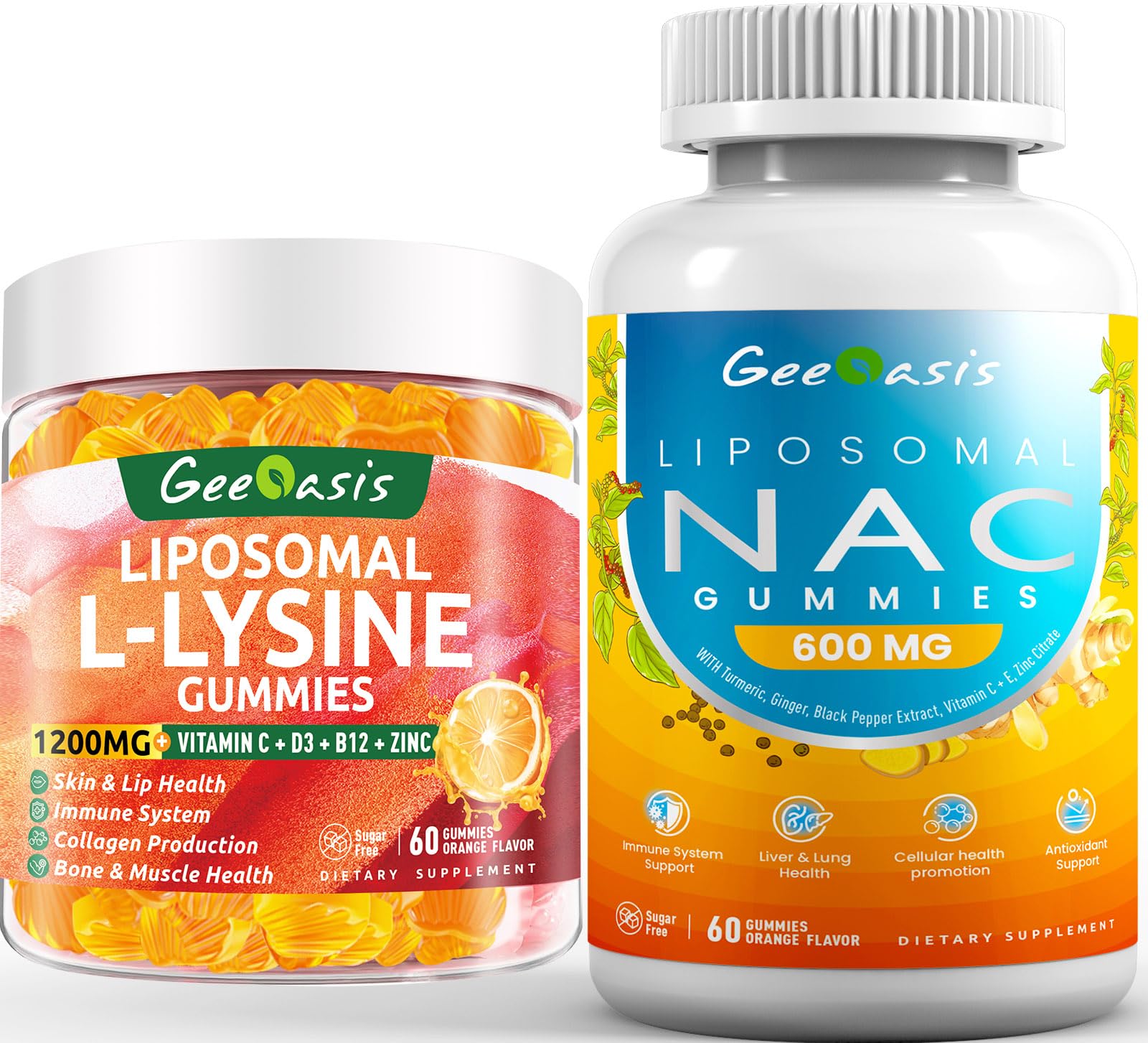 Geeoasis Liposomal L-lysine & NAC Gummies Lysine Chewable & NAC Supplement for Kids & Adults Immune Support