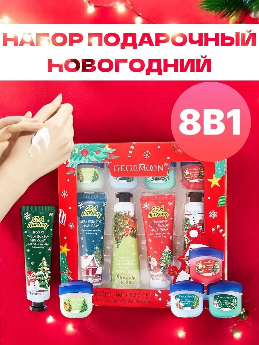 GEGEMOON Новогодний подарочный набор кремов для рук и бальзам для губ
