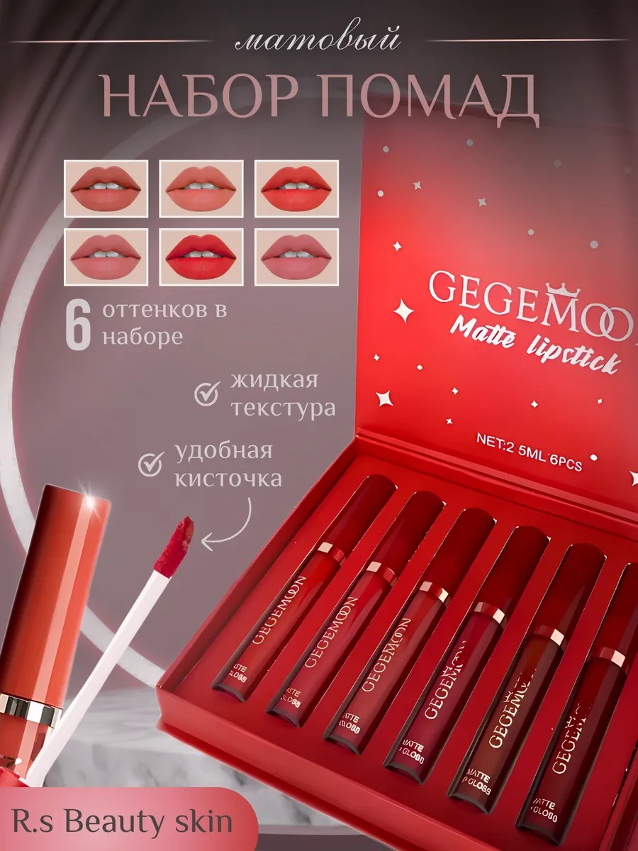 Набор красный матовых кремовых помад представляет собой комплект из 6 штук, каждая из которых обладает уникальным оттенком и текстурой. Они предназначены для матирования, контуринга и обновления цвета лица, обеспечивая натуральный и долговечный матовый, лаковый или сатиновый оттенок. Состав помад включает минеральное масло, косметическую основу и пигменты, что обеспечивает легкость нанесения и уход за кожей. Текстура кремовая, гелевая или жидкая позволяет легко наносить помаду, достигая идеального результата.