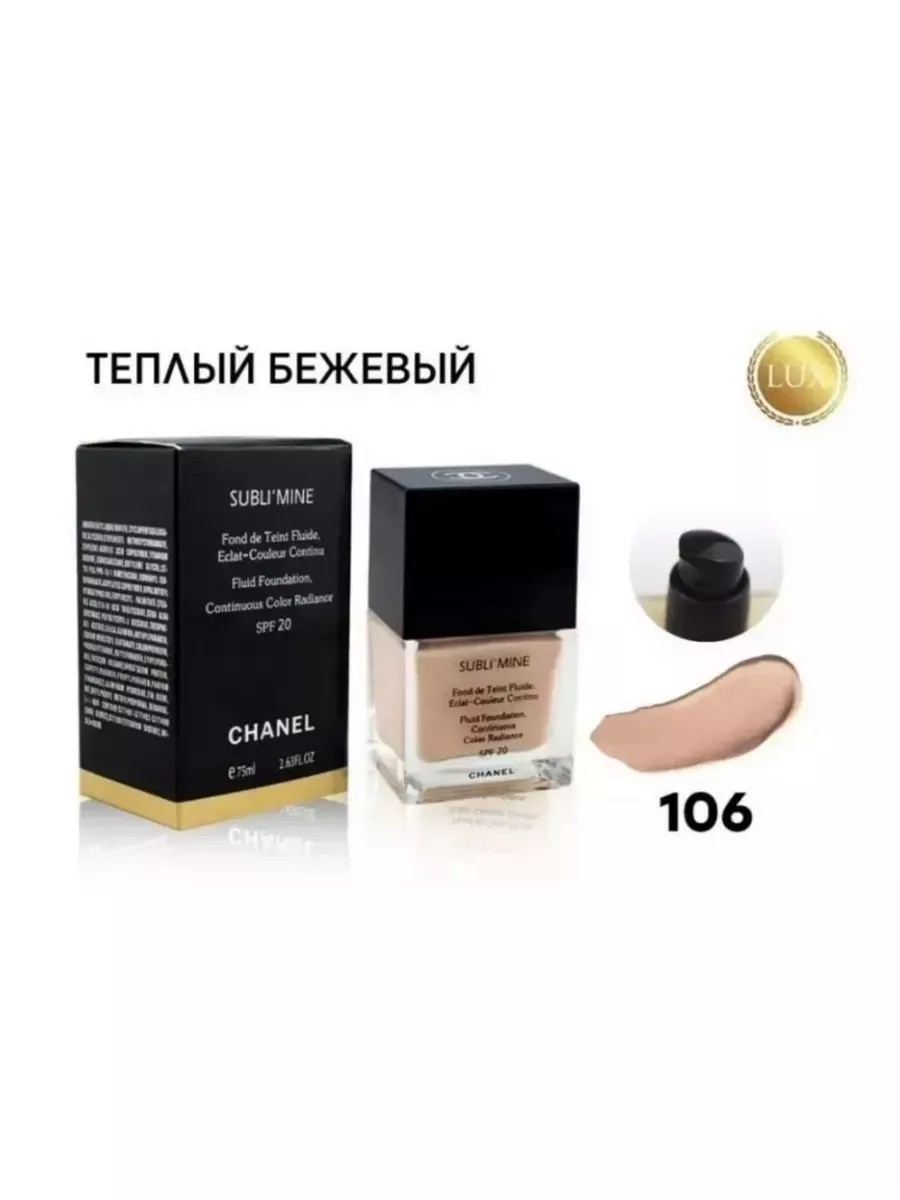 The perfect Chanel Sublimine foundation is the answer to all your foundation-related problems and worries. It provides a flawless, weightless, natural result without hiding your face under a heavy mask. Finally, a foundation that is intelligent enough to adapt to your skin tone and type, providing a natural shade even as both tone and type change. The result is a stunning complexion. This perfect foundation is formulated with unique Lux Color optical ingredients, a unique combination of photo-active ingredients and correcting pearlescent particles that play with light. Chanel's patented Pigment Micro-Mirror Technology deceives the human eye by turning its opaque side specifically toward pigmented areas. Skin tone is flawless, despite existing imperfections, and the foundation itself is completely invisible. The original formula of Chanel Sublimine fluid foundation ensures continuous brightness and color correction in accordance with lighting and skin tone. Photo Expert pigments react differently depending on the lighting, constantly maintaining the balance of makeup: indoors, the complexion looks completely natural, as at the moment of application. In daylight, the pigments slightly enhance the brightness of the tone, so it does not appear "dull white." The delicate, melt-on-the-skin moisturizing emulsion lies easily on the skin, covering it with a soft veil that provides comfort and protection (SPF 20). Moreover, the fluid has excellent "masking" properties, remarkably concealing nuances (age spots, rosacea, bruises) and small wrinkles. The consistency is pleasant, delicate, it spreads well, is absorbed and moisturizes perfectly, making the complexion very even with an aristocratic marbling. The face after application is well moisturized, the cream does not clog pores, this is not unimportant! The effect of "visible" foundation on the skin is not!