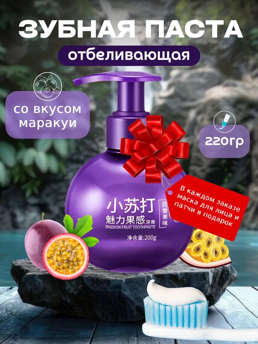 The best passion fruit-flavored whitening toothpaste with a dispenser. Affordable, convenient, and effective! 100% savings - 1 package replaces 2-3 regular tubes, large capacity. This gel toothpaste is a bestseller on the market; it perfectly whitens and cleans the entire cavity. It effectively removes plaque from tea, coffee, and cigarettes. The natural composition of the gel with a probiotic normalizes the balance of microorganisms. Lactobacilli neutralize pathogens that cause unpleasant odor, inflammation, and cavities.