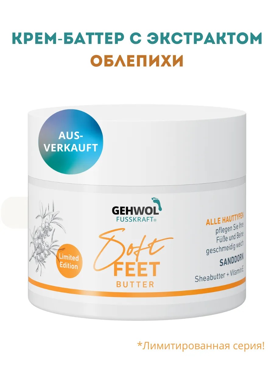 GEHWOL Soft Feet Butter Sea Buckthorn 50 мл, крем-баттер Гранат и моринга. / Лимитированная серия! / Мягкое масло для ног с ракитником быстро впитывается, а усталые и отяжелевшие ноги принесут облегчение и свежесть. / Активные ингредиенты: - облепиховое масло поддерживает процесс заживления и защитный барьер кожи; - масло авокадо: улучшает его эластичность; - масло ши: содержит ненасыщенные жирные кислоты, смягчает кожу; - витамин Е: восстанавливает и укрепляет кожный барьер; - глицерин увлажняет кожу. / Дерматологически протестировано. Также подходит для диабетиков. / Преимущества продукта: - Глубоко питает и восстанавливает сухую кожу; - Делает кожу мягкой, гладкой и ухоженной; - Облепиха — природный источник антиоксидантов; - Подходит для всех типов кожи. / Легкая текстура тает на коже и быстро впитывается. / Способ применения: Крем рекомендуется наносить утром и вечером для обеспечения круглосуточного ухода за кожей. Лёгкие массажные движения улучшают впитываемость средства и усиливают его действие, стимулируя кровообращение. Регулярное использование предотвращает появление новых участков сухости и огрубения.