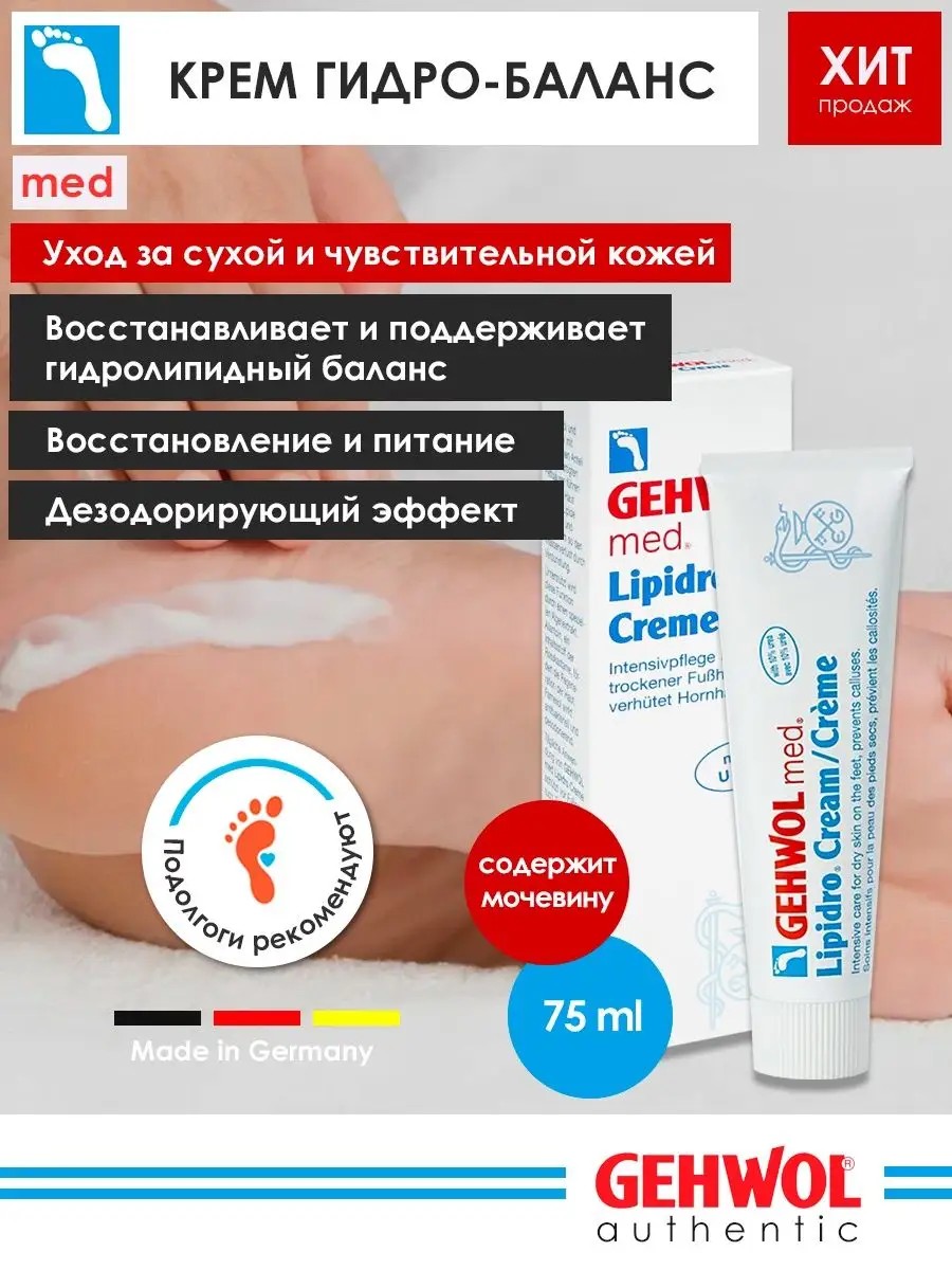 Крем для сухой кожи ног с мочевиной Гидро-баланс Геволь (Gehwol) подходит для ухода за сухой и чувствительной кожей. Гидро баланс восстанавливает и поддерживает гидролипидный баланс кожи, способствует удержанию влаги в глубоких слоях, размягчает огрубевшие участки и предупреждает их повторное появление. Масло облепихи, масло авокадо и экстракт водорослей являются источником ненасыщенных жирных кислот, глубоко питают сухую кожу. Аллантоин из конского каштана стимулирует клеточную регенерацию, ускоряет заживление. Масло папоротника выполняет роль антибактериального и дезодорирующего компонента. Хлорелла обыкновенная помогает крему проникнуть в глубокие слои кожи. Увлажняющий крем для ног гидробаланс от немецкого бренда Gehwol рекомендуется для ухода за диабетической стопой и не содержит отдушек.