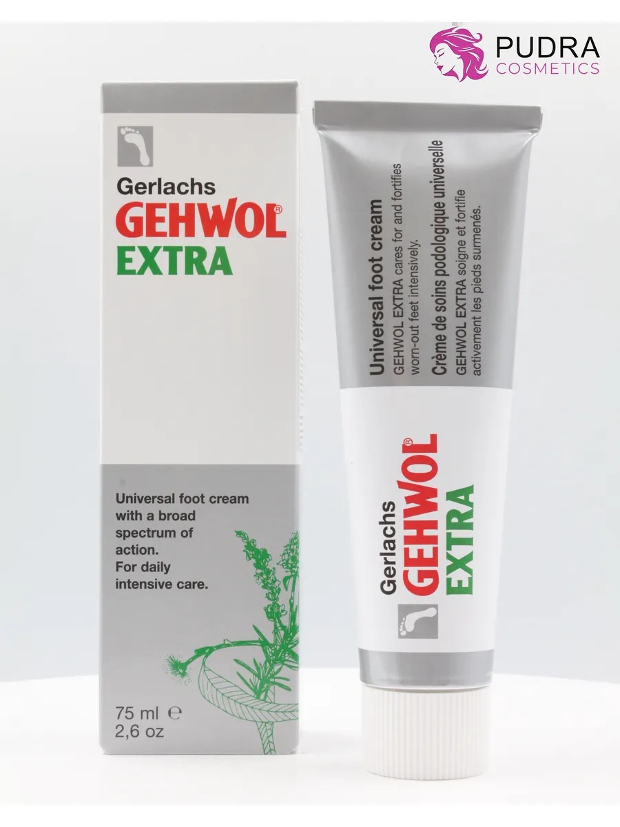 Крем Экстра Геволь (Gerlachs Gehwol Extra) интенсивно ухаживает и заботится о сильно натруженных ногах. Кожа стоп одновременно дезодорируется и дезинфицируется. Предупреждает появление чувства жжения в ногах, противодействует грибковым заболеваниям, устраняет неприятные запахи ног, смягчает ороговевшие места и мозоли, препятствует возникновению потертостей и мозолей, а также восстанавливает нормальное состояние потрескавшейся, сухой и шелушащейся кожи.