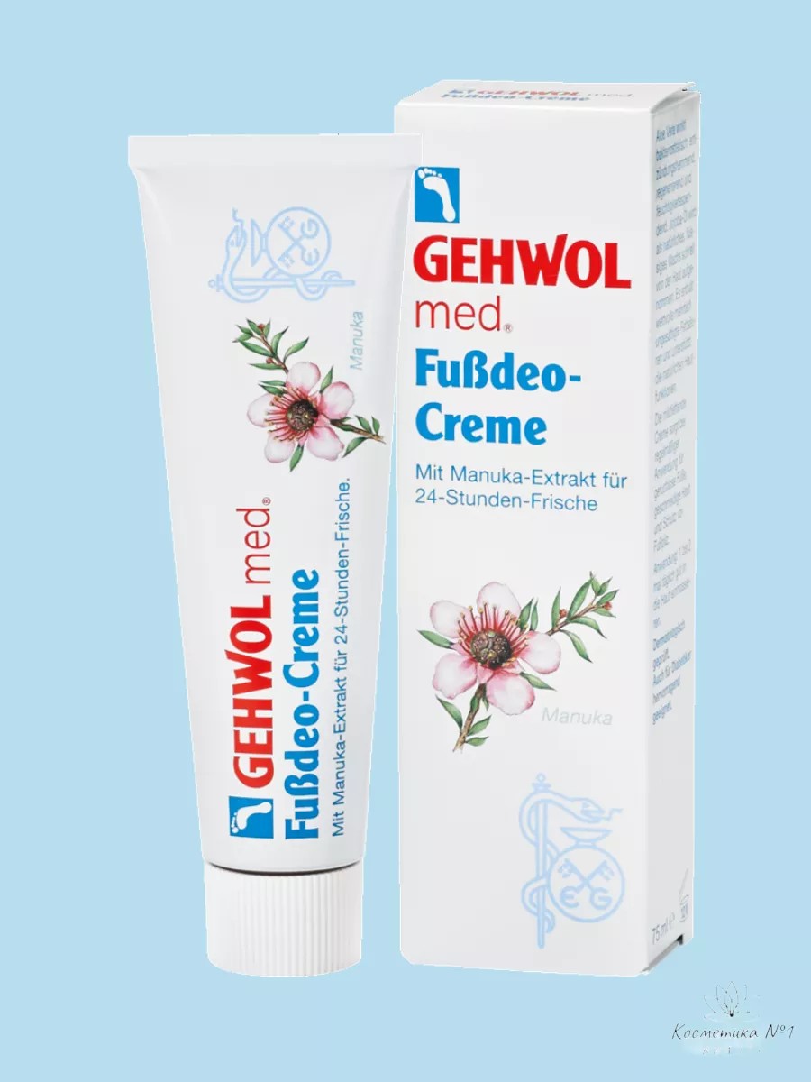 Геволь мед Крем-дезодорант для ног (Gehwol med Deodorant foot cream). Средство оказывает общеукрепляющее и ухаживающее действие помимо своих основных функций. Для достижения максимального эффекта рекомендуется пользоваться препаратом регулярно. Многие врачи рекомендуют препарат Крем-Дезодорант Для Ног - Gehwol Med Deodorant Foot Cream, поскольку он имеет натуральный и качественный состав, который превратит уход за ногами в удовольствие. Крем дезодорант содержит в качестве основы масло жожоба, алое вера, комбинацию масла чайного дерева (мануки) и активизированного оксида цинка для устранения сильного запаха ног на длительное время. Масло чайного дерева с горьковатым запахом оказывает также смягчающее действие и обладает высокой активностью против бактерий и грибков. Он особенно подходит для гигиены ног. Оксид цинка является ингредиентом для ухода за чувствительной кожей ног, замечательным по своей надежности средством противомикробного действия и важным фактором для защиты кожи. Алоэ вера обладает бактериостатическим и противовоспалительным действием, регенерируя и регулируя содержание влаги. Натуральное масло жожоба содержит ценные ненасыщенные жирные кислоты, быстро впитывается кожей и поддерживает важнейшие функции кожи. Нежно смягчающий крем для ног при регулярном его применении позаботится об удалении неприятных запахов, их защите против грибковых заболеваний и эластичности кожи. Проверено по дерматологическим показателям. Применение: распылять на чистую и сухую кожу ног утром или вечером. Обрабатывать не только поверхность ног, но и промежутки между пальцами.