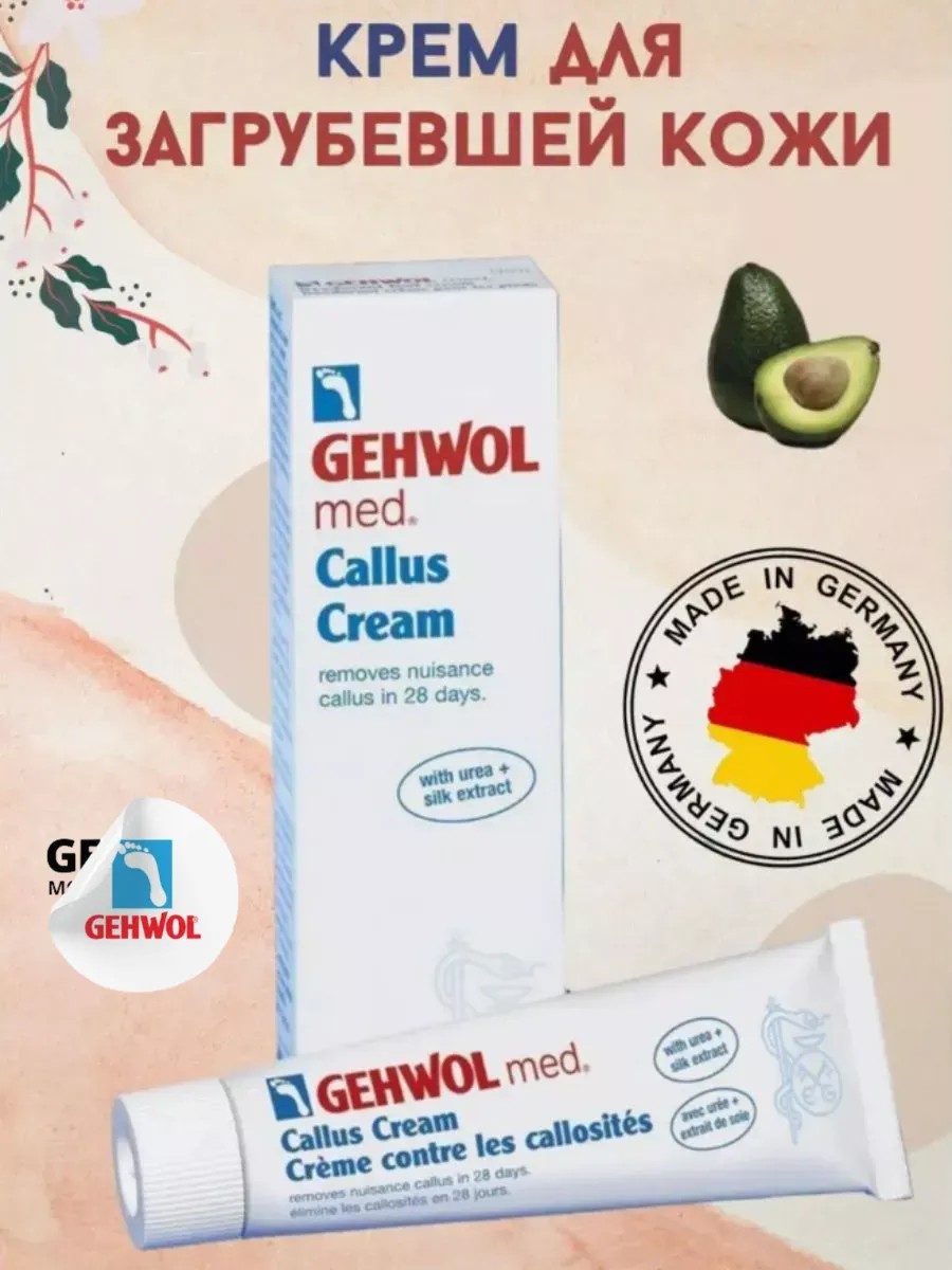 Gehwol Med Callus Cream (Hornhaut Creme) for rough feet. Designed to soften rough feet, this cream will replace expensive salon treatments. Its unique formula guarantees the elimination of hyperkeratosis within 28 days, as proven experimentally. / The secret to Gehwol's effectiveness for rough skin lies in a carefully selected combination of urea, avocado oil, and glycerin, which will make your feet smooth and silky. / Choose this unique product from the professionals at Gehwol, and in just 4 weeks you will get rid of rough feet. / Active ingredients: - urea softens the skin, exfoliates, and fights pathogenic fungi and bacteria; - avocado oil nourishes, regenerates, and renews epidermal cells; - glycerin moisturizes, softens, and retains moisture on the skin's surface. Directions: Apply twice daily to clean, dry skin, avoiding irritated or inflamed areas. Ideal in combination with Gehwol Hydro-Balance Cream. Available in 75 ml and 125 ml. The 125 ml version is known as Gehwol Hornhaut Cream.