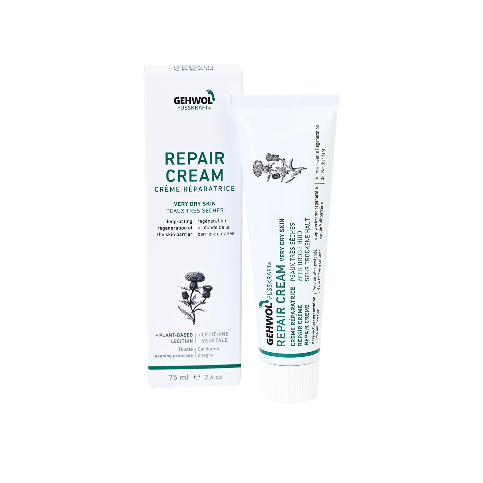 GEHWOL FUSSKRAFT Repair Creamdelivers intensive care for extremely dry, rough, and damaged skin. Powered by innovativeplant-based lecithin technology, this rich yet fast-absorbing cream restores the skin's natural barrier without a greasy feel.