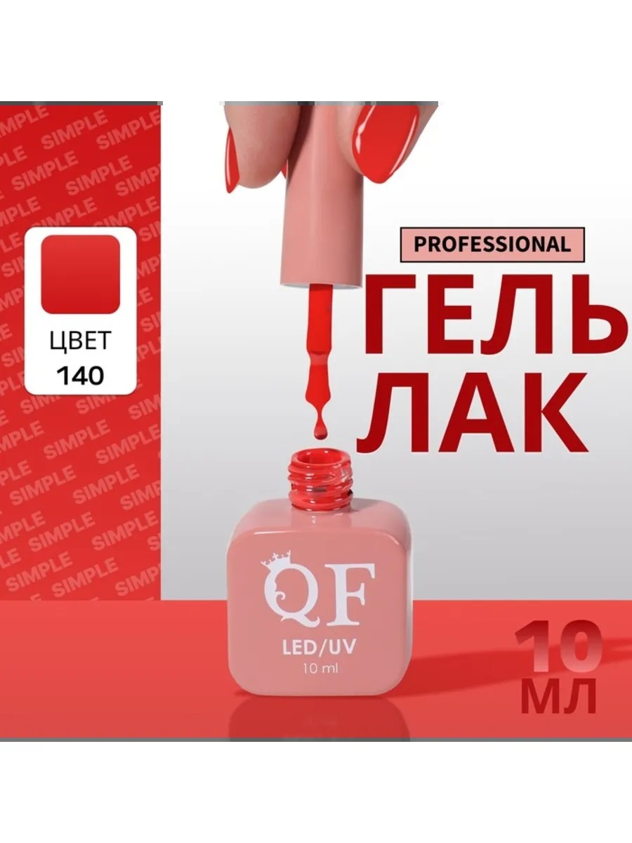 Гель-лак однотонный трехфазный UV LED красный 140