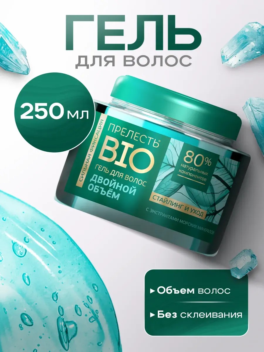 Гель для волос Прелесть BIO Двойной Объем — это профессиональное средство для укладки волос, моделирования причесок и фиксации локонов. Гель содержит 80% натуральных компонентов в составе, сочетая в себе сильную фиксацию до 24 часов и заботу о здоровье Ваших волос. Морские минералы способствуют восстановлению структуры волос, утолщают их, благодаря чему достигается дополнительный объем. Состав с уникальным ухаживающим комплексом 7 Healthy Herbals на основе пантенола и семи лечебных трав, Прелесть BIO придает блеск, обеспечивает восстановление, питание, бережную заботу для волос и секущихся кончиков. Этот продукт с сильной фиксацией может использоваться для создания любых форм причесок и стилей укладки. Подходит для бороды и усов. Гель для волос Прелесть Био подходит для тонких, коротких, длинных, кудрявых и непослушных волос. Не сушит волосы и предотвращает ломкость, прозрачный гель не оставляя следов на волосах, придаёт им прикорневой объем, здоровый и ухоженный вид. Профессиональный гель для укладки не только обеспечивает сильную фиксацию, но и позволяет моделировать оригинальные прически, сохраняя силу и здоровье каждой пряди. Вы можете создавать различные виды укладок, такие как ирокез, эффект мокрых волос или мягкие волны. Особая формула геля обеспечивает длительную фиксацию без склеивания и застывания волос, с помощью геля можно убрать пушистость волос. Оставляет волосы эластичными и идеально подходит для естественной сушки и сушки с применением диффузора. Гель экономичен в использовании. Имеет нейтральный аромат. Можно использовать как гель-кастард. Он подходит для женщин, мужчин, для подростков и спортсменов.