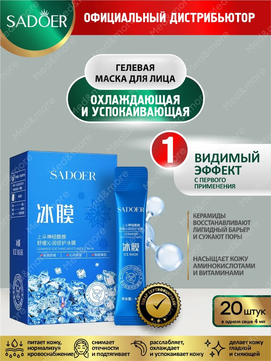 | Полное наименование товара | Охлаждающая и успокаивающая гелевая маска для лица Sadoer с керамидами 4 мл. 20 шт./уп. |