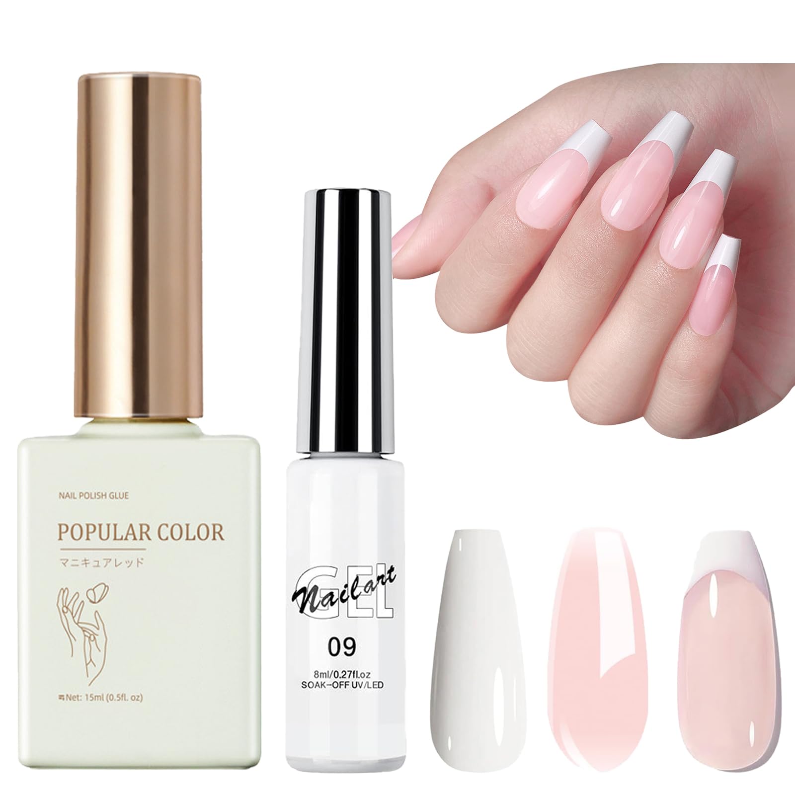 Gel Nail Polish Set for French Manicure White Nude Pink Jelly Gel Nail Polish Gel Liner Nail Polish Painted French Tips Gel Nail Design Soak off UV/LED Jelly Gel Polish for Women DIY French Manicure