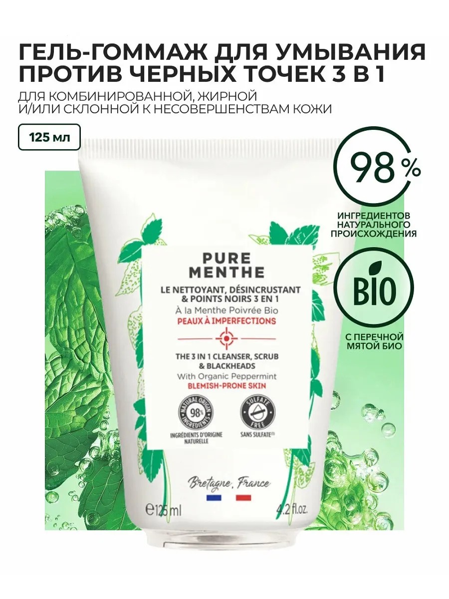Гель-Гоммаж Для Умывания Против Черных Точек 3 в 1 бережно очищает и отшелушивает кожу без пересушивания, очищает поры и сокращает черные точки.