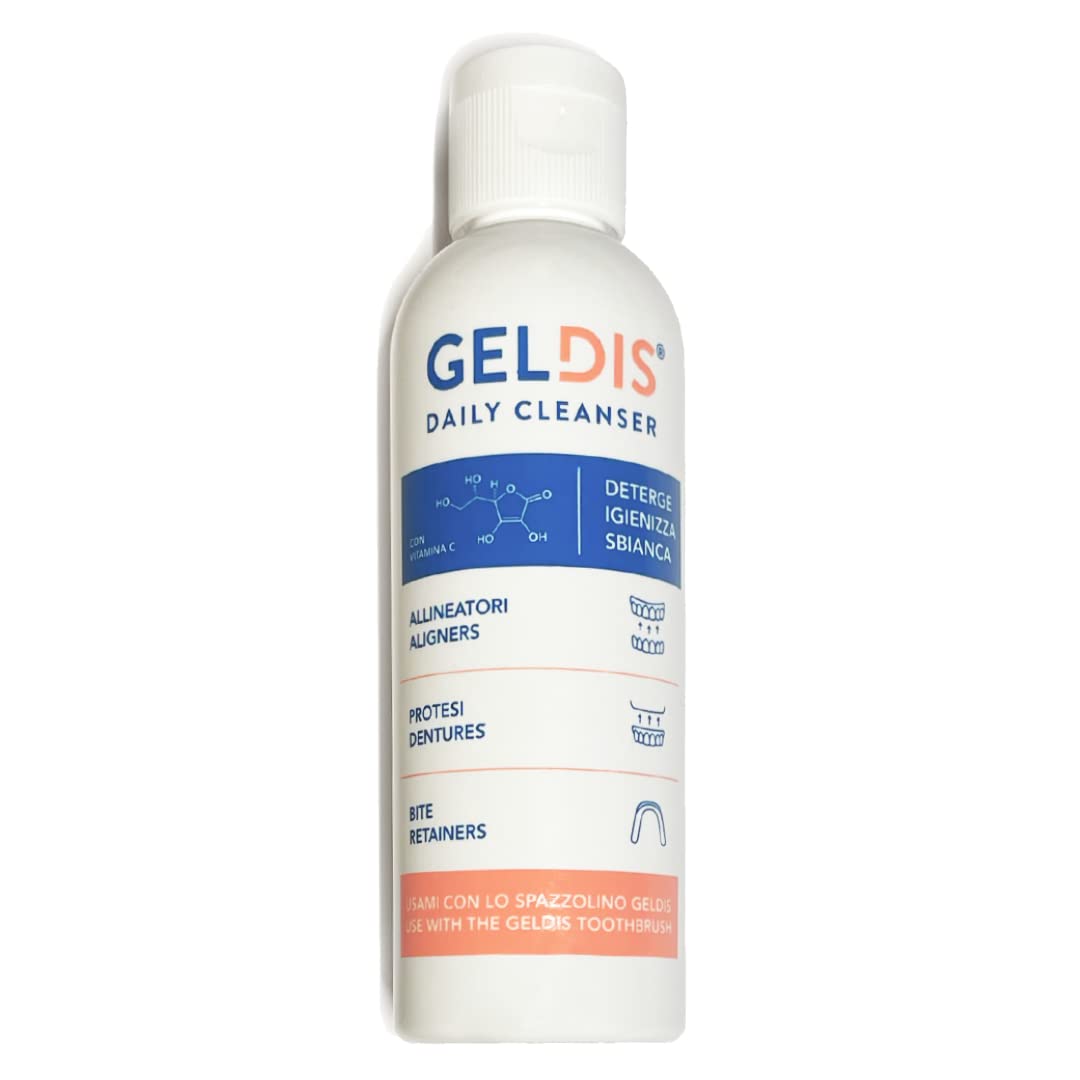 Geldis is a cleaning gel for the daily cleaning of dentures, removable appliances, clear masks, and mouthpieces. Geldis thoroughly cleans masks (Invisalign, etc.), preserves their transparency, and prevents unsightly yellowing. It is particularly suitable for the daily hygiene of all types of removable dentures, mouthpieces, and appliances that also require hygienic cleaning before storage in containers. INGREDIENTS Aqua, Sodium Laureth Sulfate, Cocamide DEA, Sodium Chloride, Mentha Piperita Oil, Phenoxyethanol, Benzoic Acid, Acorbic Acid, Dehydroacetic Acid, Ethylhexylglycerin, Limonene INSTRUCTIONS FOR USE Pour a small amount of product onto dentures, mouthpieces, or mouthpieces. Brush with a removable appliance toothbrush. Rinse thoroughly under running water. For best results, we recommend repeating this process each time you brush your teeth, or several times a day if necessary. SAFETY WARNING For external use only. Avoid contact with eyes. Keep away from direct flame or heat source. See moreSuitable for transparent rolls and appliances, removable dentures, orthodontic appliances, immobilizers, and invisible masks. Prevents plaque and tartar buildup on appliances. Indicated for the daily hygiene of all types of removable dental prostheses, which remain clean and disinfected after use. Perfect for cleaning and sanitizing needles and appliances, which must be cleaned and disinfected before being placed in appropriate containers. Provides a whitening effect with vitamin C on masks, dental appliances, prostheses, and needles, while maintaining their transparency and preventing unsightly yellowing.Geldis Gel per l'igiene quotidiana di apparecchi sanitari, 100mlDESCRIPTION DU PRODUIT DESCRIPTION DU PRODUIT Geldis est un gel nettoyant pour le nettoyage quotidien des prothèses, appareils mobiles, masques transparents et embouts. Geldis nettoie les masques en profondeur (Invisalign, etc. ), préserve leur transparence et empêche le jaunissement gênant. Il est particulièrement adapté pour l'hygiène quotidienne de tous les types de prothèses dentaires mobiles, d'embouts et d'appareils qui doivent également être nettoyés et nettoyés de manière hygiénique avant le stockage dans les récipients. INGRÉDIENTS Aqua, Sodium Laureth Sulphate, Cocamide dea, Sodium Chloride, Mentha Piperita Oil, Phenoxyethanol, Benzoic Acid, Acorbicacid, Dehydroacetic Acid, Ethylhexyglycerin, Limonene MODE D'EMPLOI Versez une petite quantité de produit sur les prothèses dentaires, prothèses dentaires, protège-dents ou embouts. Brossez avec la brosse à dents pour appareils mobiles. Rincer abondamment à l'eau courante. Pour un résultat optimal, nous vous recommandons de répéter l'opération à chaque fois que vous vous brossez les dents ou plusieurs fois par jour si nécessaire. AVERTISSEMENT DE SÉCURITÉ Usage extérieur uniquement. Évitez tout contact avec les yeux. Tenir à l'écart de la flamme nue directe ou de la source de chaleur. Voir plusConnt pour les rouleaux et appareils transparents, les prothèses amovibles, les appareils orthodontiques, les immobilisations et les masques inibles. Empêche la formation de plaque et de tartre sur les appareils. Indiqué pour l'hygiène quotidienne de tout type de thèse dentaire amovible, qui après son utilisation, restent propres et désinfectées. Parfait pour le nettoyage et l'hygiène des piqûres et des appareils électroménagers, qui doivent être nettoyés et désinfectés avant d'être placés dans des récipients appropriés et. Acci n blanchissant avec vitamine C sur masques, appareils M viles, Pr thèses et piqûres, tout en conservant sa transparence et en évitant les colorations jaunâtres gênantes.