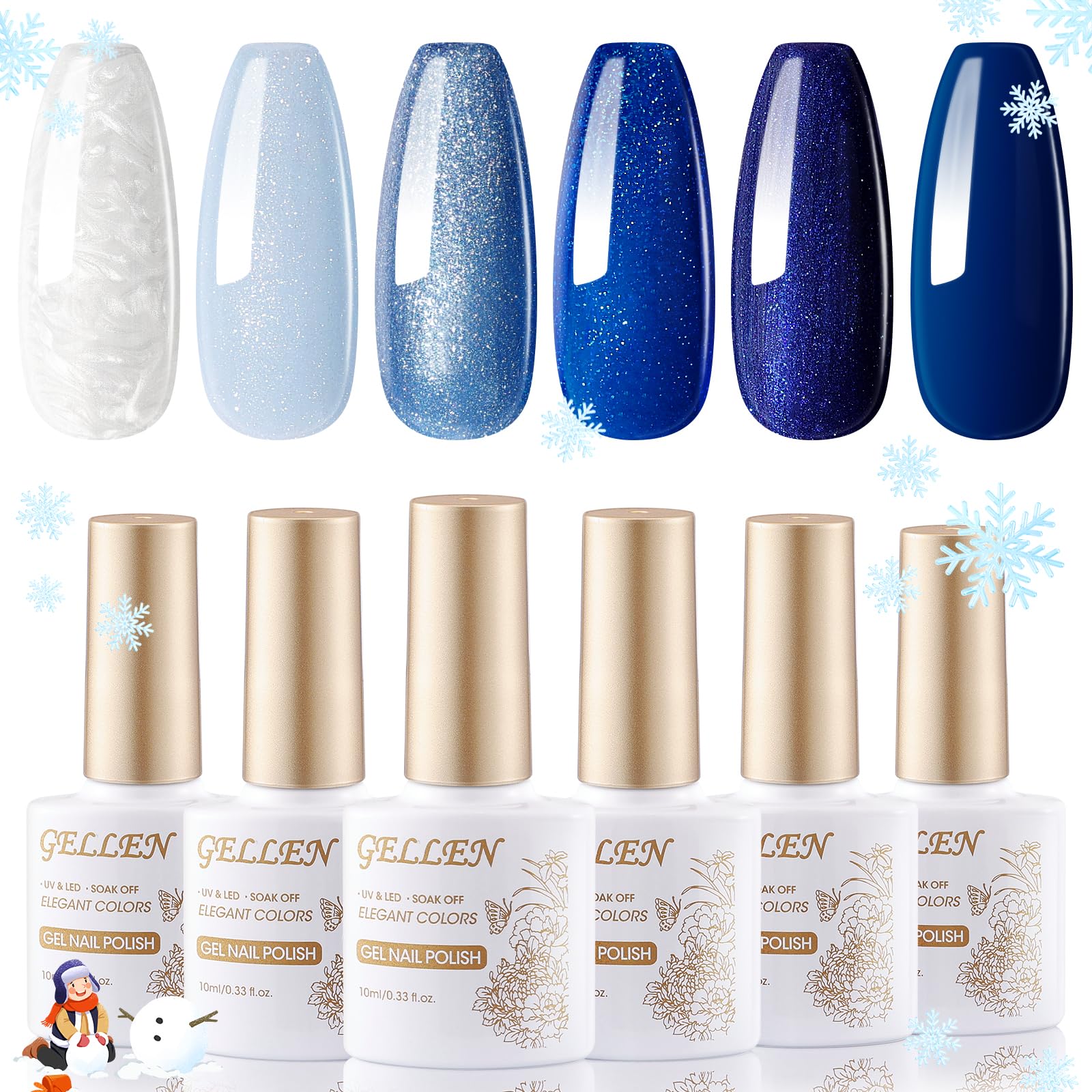 Gellen Gel Nail Polish Set 6 Colors 10ML Navy Royal Blue Shades Glitter Pearlescent White Gel Polish Kit Soak Off UV Gel X Nail Art Design DIY Salon Manicure Christmas Nails Gift for Women Mom Enjoy the Blue