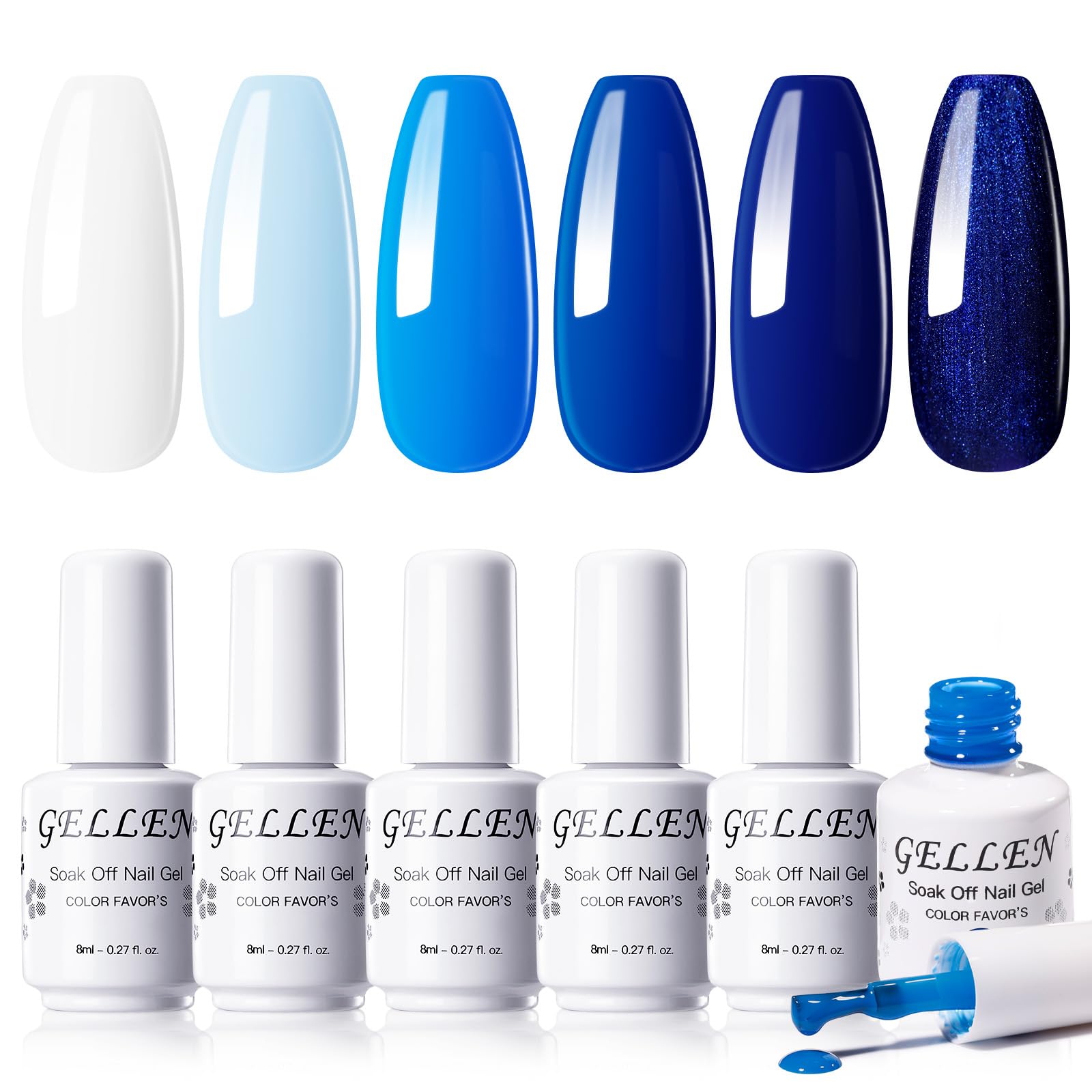 About the Color Difference: Due to the number of layers and the thickness you apply, original color of everyone's nails, any color difference of the computer/mobile display and photographic lighting effect etc., it will have a slightly color difference from the picture. Easy Application: Designed for both beginners and experienced users, the polish applies smoothly and evenly for flawless coverage without streaking or bubbling. Ideal for at-home or professional salon use. Safe and Non-Toxic: Formulated without harmful chemicals, this gel polish set is safe for use at home or in salons, ensuring that you can beautify your nails with peace of mind. Long-Lasting Wear: Formulated for extended wear, this gel polish set delivers a chip-resistant finish that stays beautiful for weeks. Perfect for those who desire a durable manicure that can withstand daily activities. Vibrant Color Selection: Features six stunning shades, including crisp White and sophisticated blues (Royal Blue, Dark Blue, Navy Blue), perfect for creating an array of stylish nail designs for any occasion.