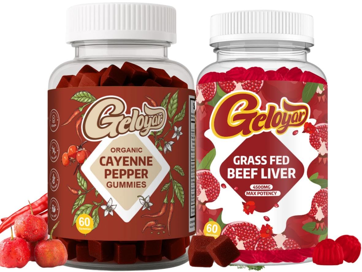 Geloyar Cayenne Pepper Supplements Gummies Grass Fed Beef Liver Gummies Support Cardiovascular & Immune System
