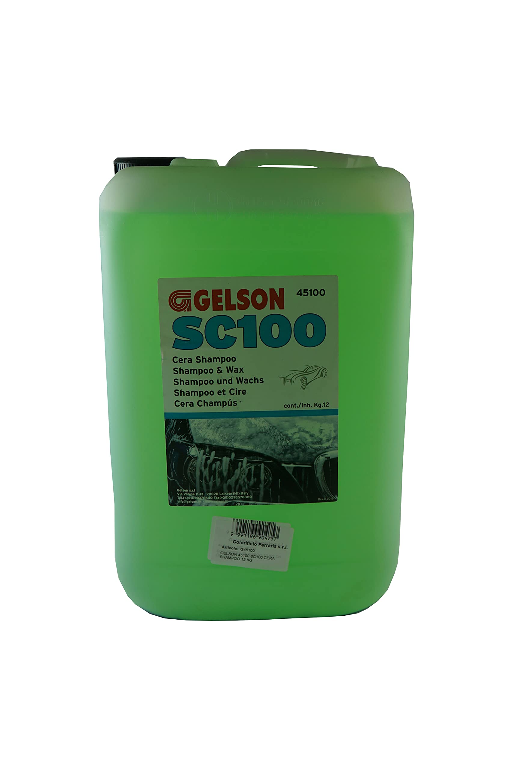 SC100 wax shampoo gelson concentrate with polished and protective properties, especially for the non-aggressive cleaning of cars, cars and all painted surfaces.GELSON 45100 SC100 Wax Shampoo 12 kg SC100 wax shampoo gelson concentraat met gepolijste en beschermende eigenschappen, speciaal voor de onagressieve reiniging van auto's, auto's en alle gelakte oppervlakken.