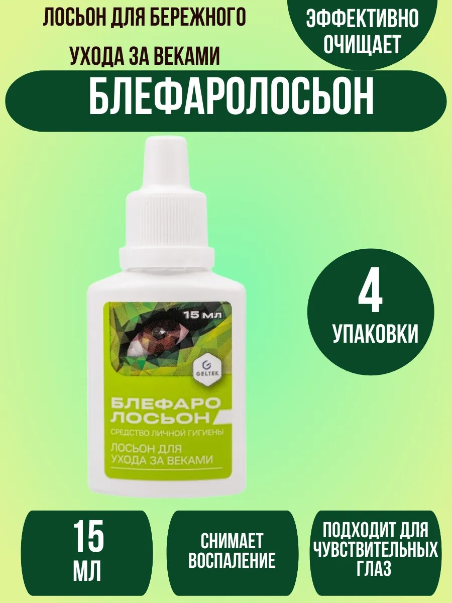 | Комплектация | 4 упаковки; Блефаролосьон лосьон для ухода за веками косметический 15мл |
