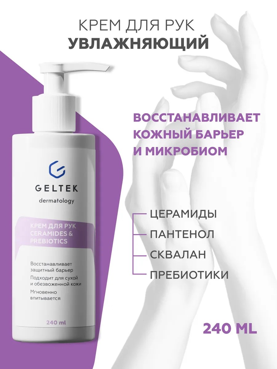 АКТИВНЫЕ ИНГРЕДИЕНТЫ: пантенол и сквалан успокаивают воспаления, снимают раздражение, ускоряют регенерацию и повышают эластичность. Сок алоэ вера заживляет повреждения, увлажняет и защищает. Витамин Е является антиоксидантом, стимулирует клеточное обновление, укрепляет капилляры. Масло ши увлажняет, смягчает и разглаживает, убирает покраснения и шелушение. Масло сладкого миндаля питает, освежает и тонизирует. Церамиды глубоко восстанавливают, предотвращают потерю влаги, защищают от обветривания в холодное время года. Пребиотики повышают местный иммунитет и восстанавливают микрофлору, в т.ч. после использования антисептиков.