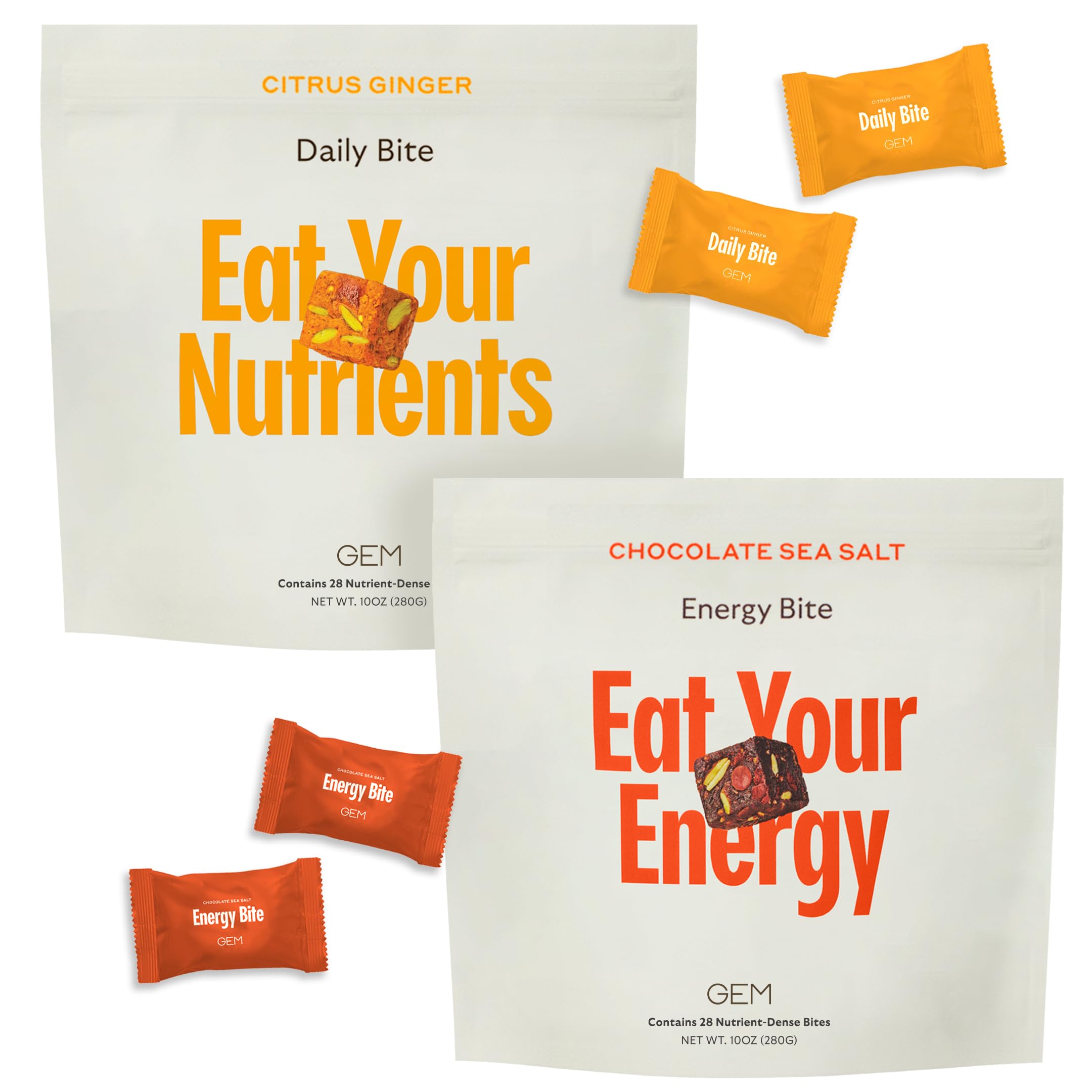 GEM GLP-1 Booster Bundle Real Food Bites for Appetite & Metabolism Support 28 Servings of GEM s Daily Bites and Caffeinated Energy Aid Bites Whole Food Nutrients Vegan Gluten-Free