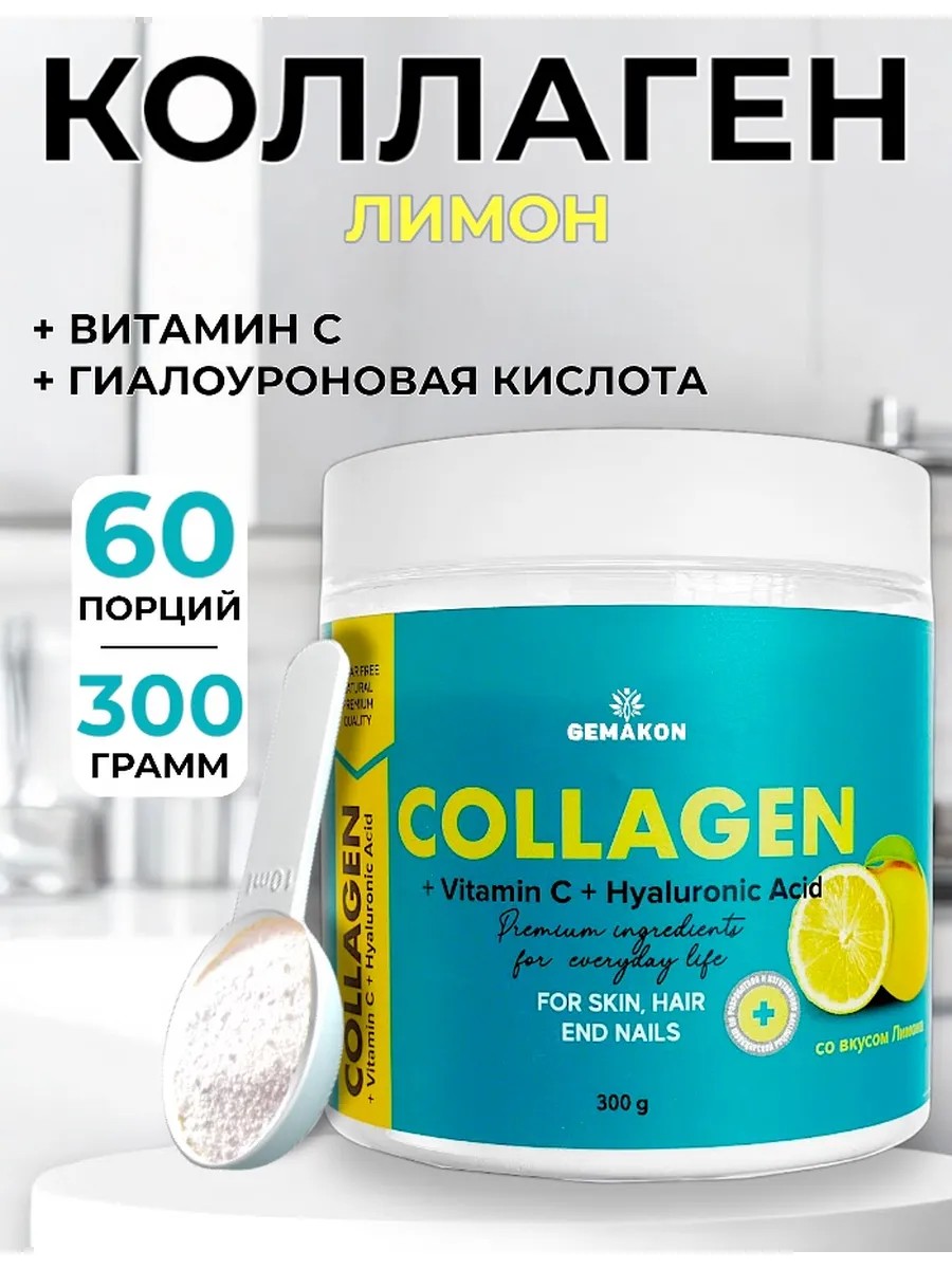 GEMAKON Коллаген говяжий с витамином С и гиалуроновой кислотой Лимон