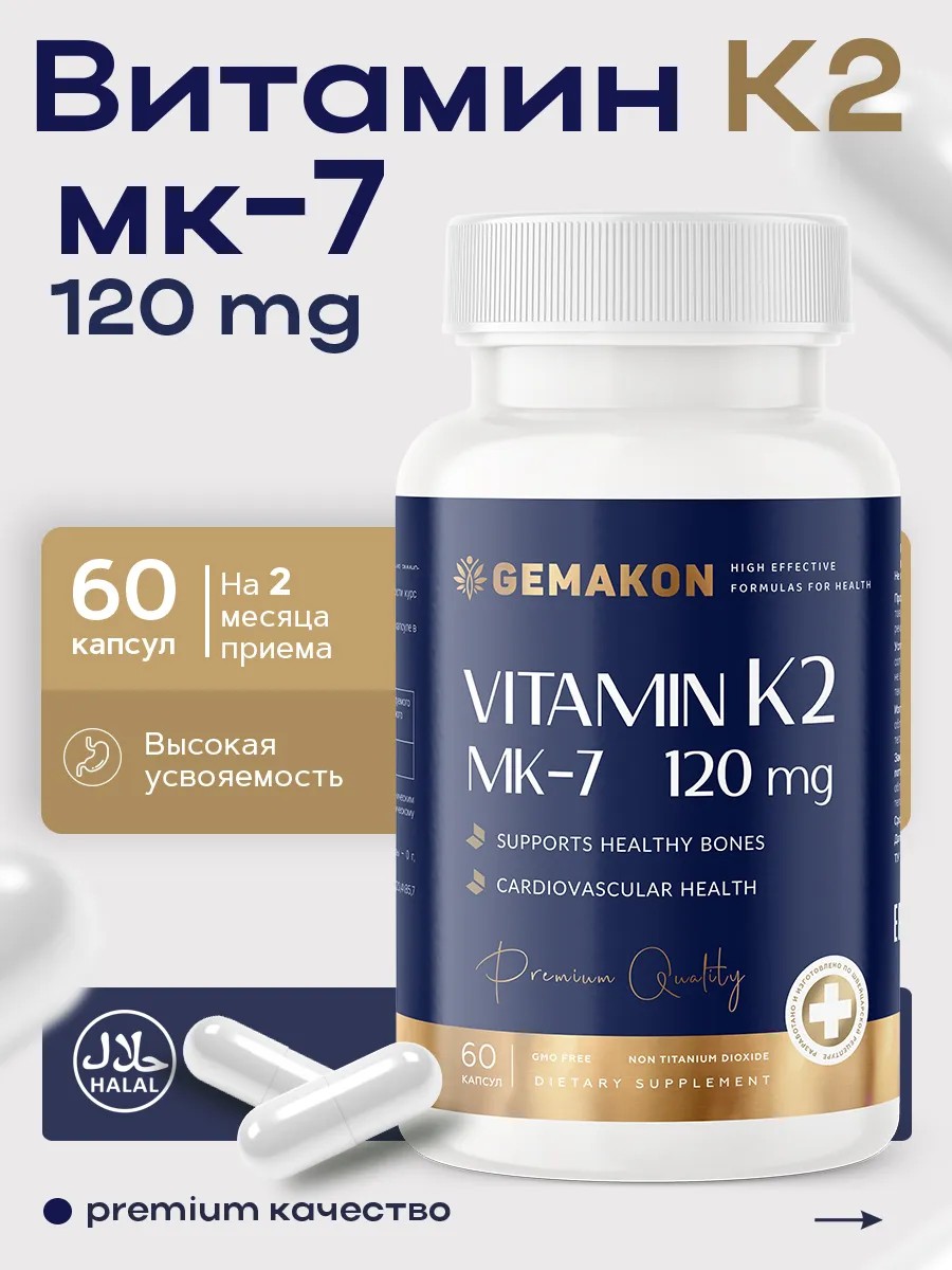 GEMAKON Витамин К2 МК-7 (менахинон-7) 120 мг