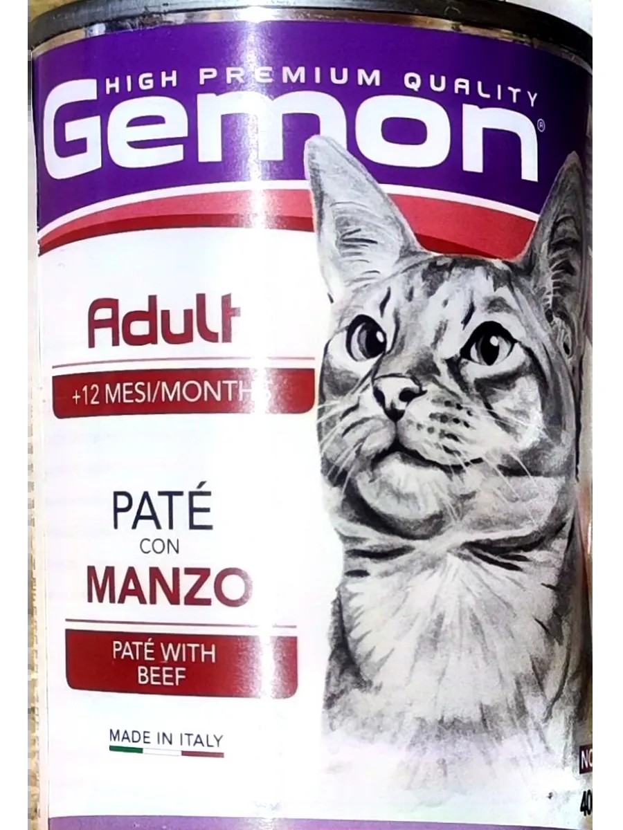 Влажный консервированный корм с говядиной для взрослых кошек Gemon (Джемон) Cat в консервах 400 г. Полноценный сбалансированный корм для взрослых кошек и котов в возрасте от 1 года.