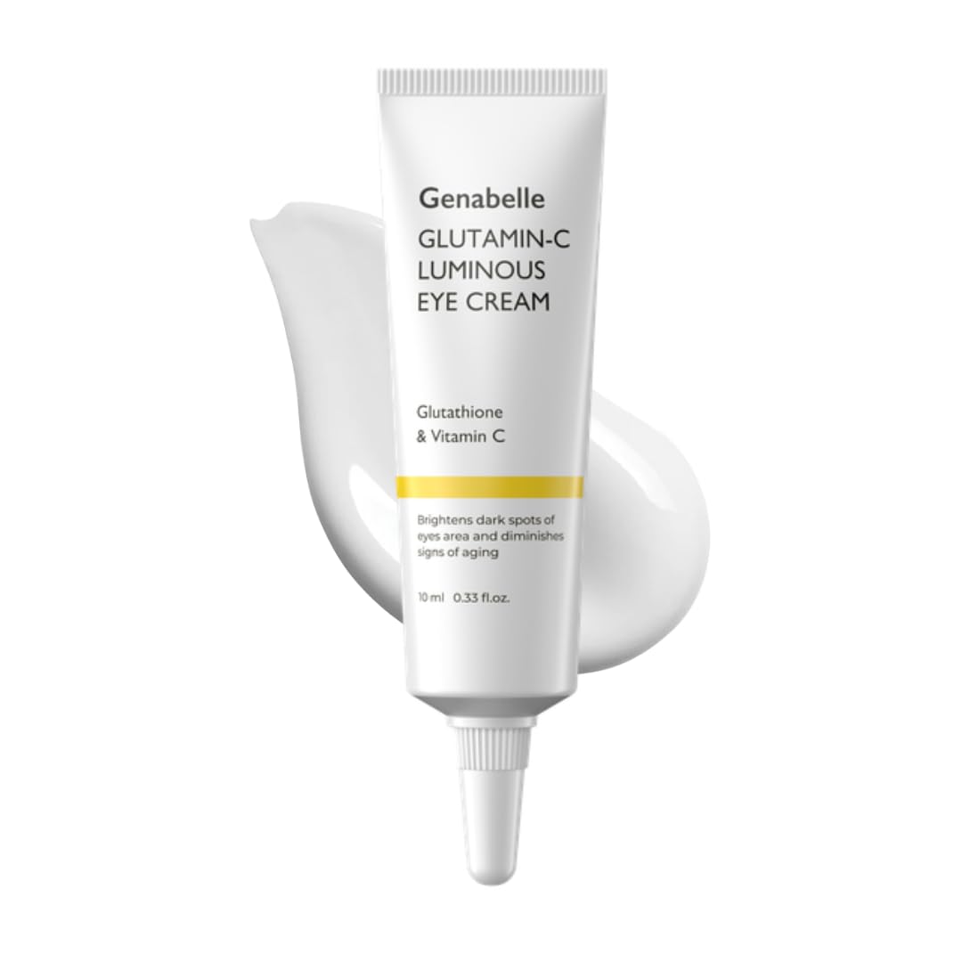 Illuminating and hydrate tired eyes with Genabelle Glutamin-C Luminous Eye Cream. Infused with Glutathione, Vitamin C, and Shea Butter, this lightweight formula helps reduce the look of dark circles, fine lines, and puffiness for a smoother, more radiant under-eye area.