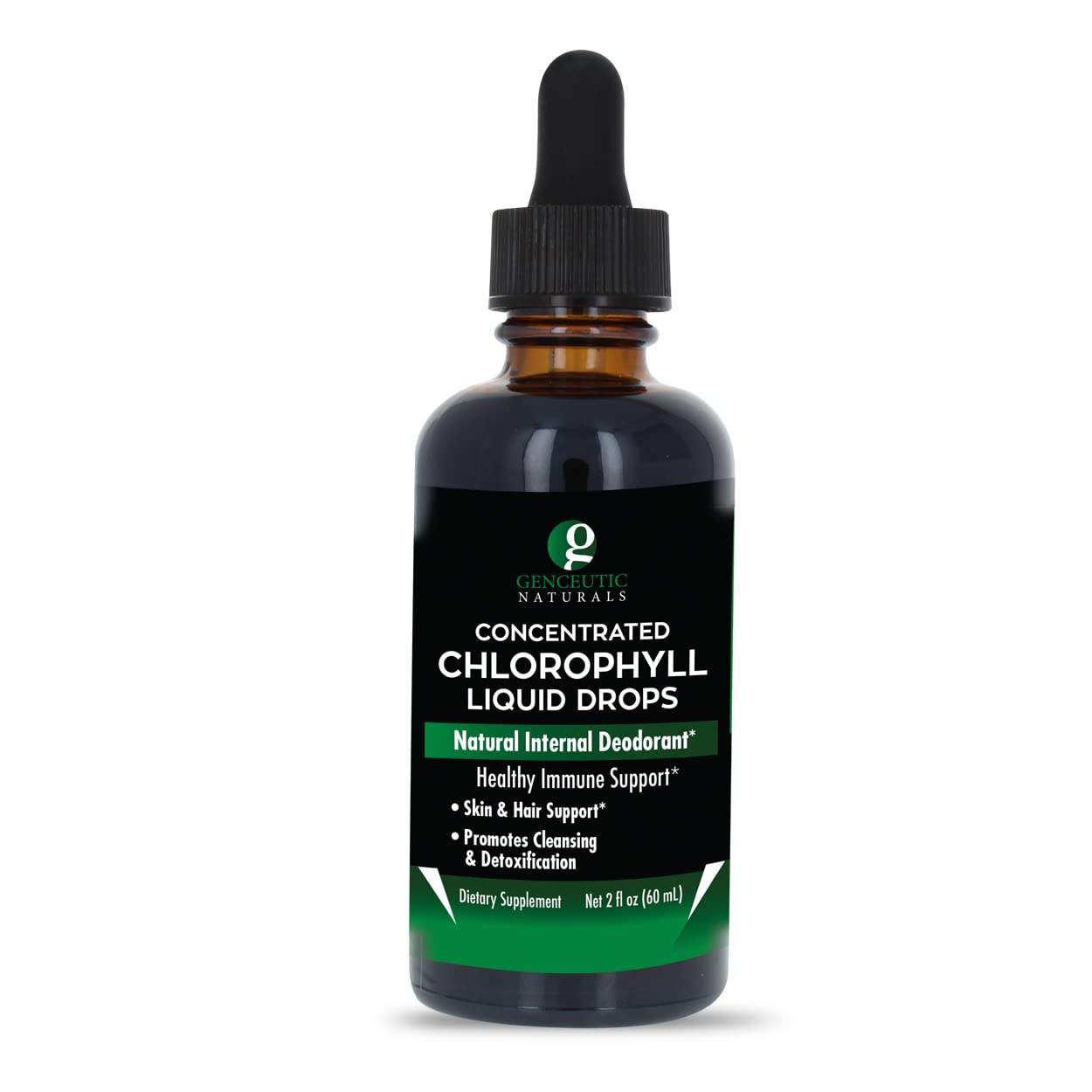 Genceutic Naturals Liquid Chlorophyll Drops 2oz, Internal Deodorant*, Skin and Hair Support* Supports Healthy Immune Function, Detoxification 2oz Drops, 60 Servings | Gluten Free | Non-GMO