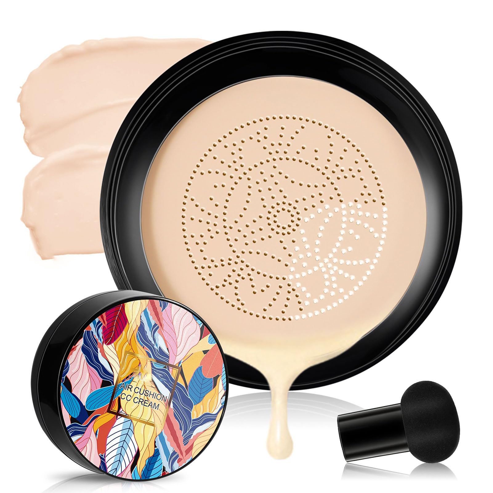 ? For All Skin Types: Apartment Air Cushion CC Cream Ideal for oily, dry, combination. Wraps upon skin for a naturally smooth, silky finish. No more cakey stuffy makeup!. ? For All Skin Tones: CC cream stands for "Color Correction" cream, which instantly reduce redness correct uneven skin tone. Auto color correction is based on your own skin tone. ? Unique Makeup Brush: Apartment Air Cushion CC Cream Applies mushroom-head sponge design with unique cutting holes. Minimum water retention ensures to hold perfect amount of CC cream. Great for blending and non-cakey, cleaning up smudges and smoothly even out CC cream. ? Long-Lasting, Waterproof Sweatproo: Apartment Air Cushion CC Cream Stays long time and keeps soft coverage without greasy feeling. ? 2024 New Mushroom-Head Air Cushion CC Cream: This Apartment Air Cushion CC Cream is a hybrid of skincare and makeup that can be used as a makeup foundation to cover blemishes such as wrinkles, spots, enlarged pores, marks, etc.