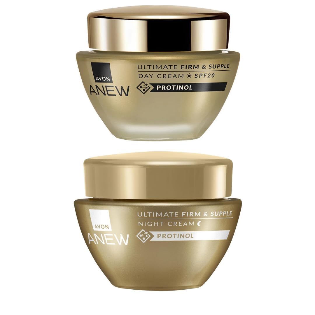 Experience advanced skincare with the AVON Anew Ultimate Day Night Cream Set. This powerful duo targets visible signs of aging, helping to improve skin firmness, smoothness, and radiance. The day cream, enriched with SPF, protects and hydrates, while the night cream works overnight to deeply nourish and revitalize your skin. Each 1.7 fl.oz jar delivers luxurious moisture and visible results, making it the perfect addition to your daily skincare routine.