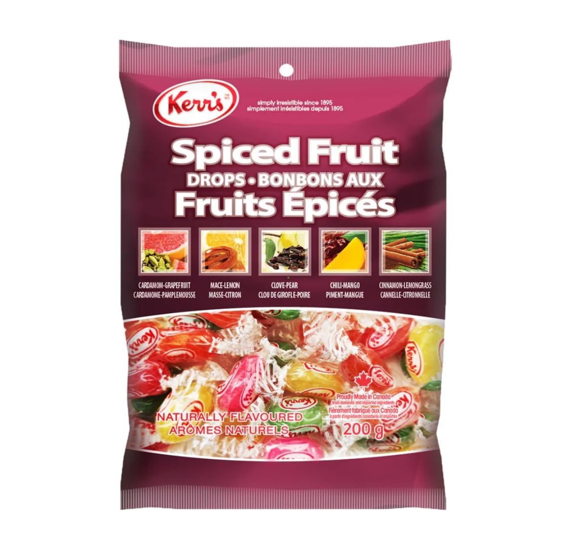 Kerr's Spiced Fruit Drops 200g kerrs - pack of 2 Product of CanadaItem package dimensions: 5.91 inches. Item package weight: 0.88 pounds. Kerr's Spiced Fruit Drops 200g kerrs - pack of 2 Product of Canada.