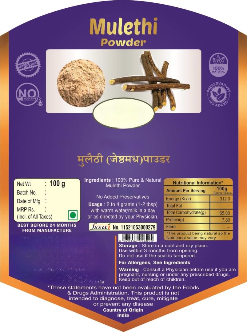 Mulethi Powder for face pack can be used as a skin tightening face pack or body mask to clear the impurities from your face and body. Mulethi powder is edible and its Consumption boosts immunity. Mulethi powder can be beneficial for maintaining a healthy scalp. It also helps to reduce dull skin and gives radiant glowing skin. Mulethi powder for eating, Adhimadhuram powder for face, Edible Mulethi Powder for Eating, Mulethi Powder for Consumption, Mulethi Powder for Face.