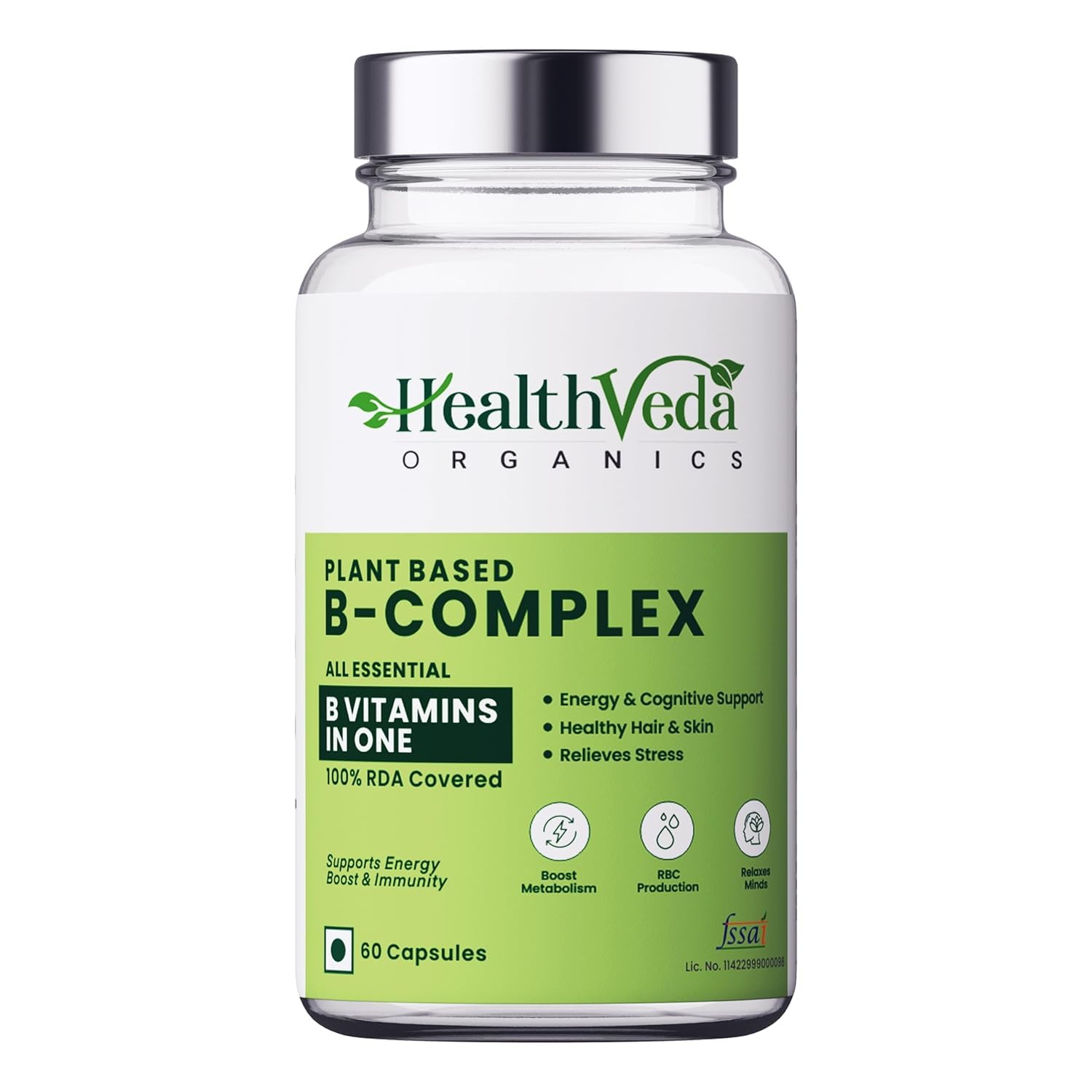 Generic Organics Plant Based Vitamin B-Complex - All essentail B Vitamins in One | Hair Growth Boosts Energy & Immunity - 60 Veg Capsules